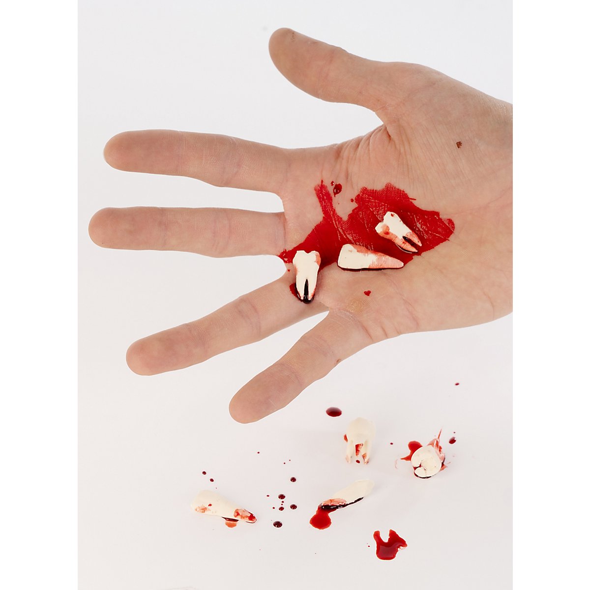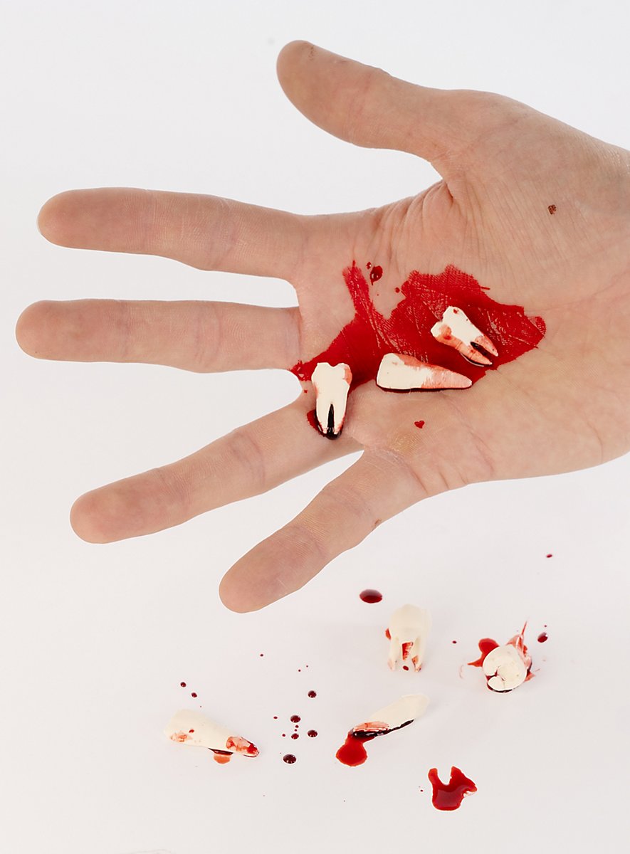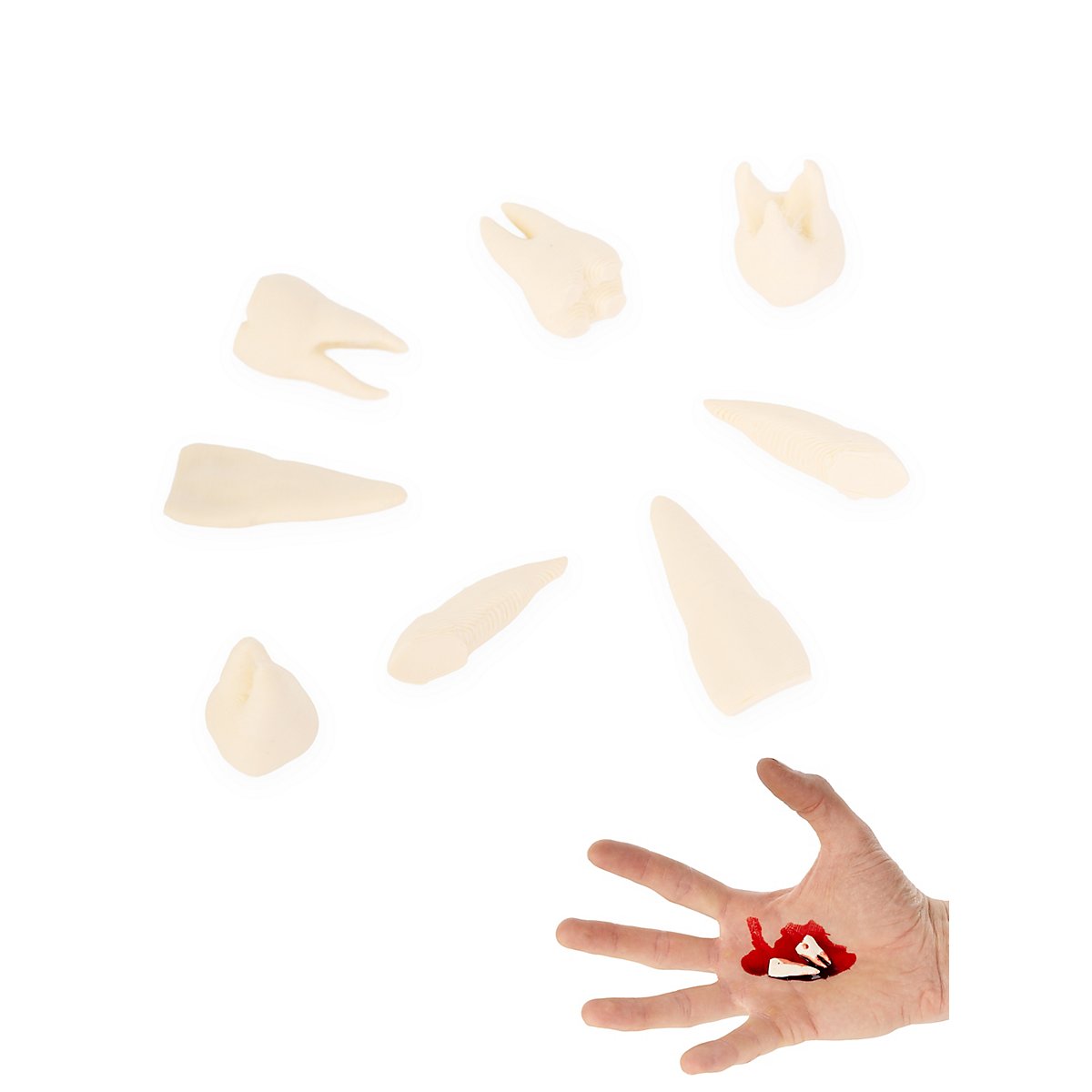 Ein Satz Menschenzähne als Gruseldeko für Halloween und Larp