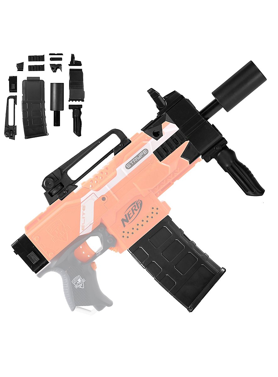 Obwohl diese Anbauteile prinzipiell an die meisten Dartblaster von NERF passen, die über die entsprechenden Aufnahmen verfügen, passen diese Teile von der Passform her am besten an die beliebte Stryfe und Elite 2.0 Phoenix von NERF. Denn die MP7 ist als eine besonders handliche Maschinen Pistole bekannt.