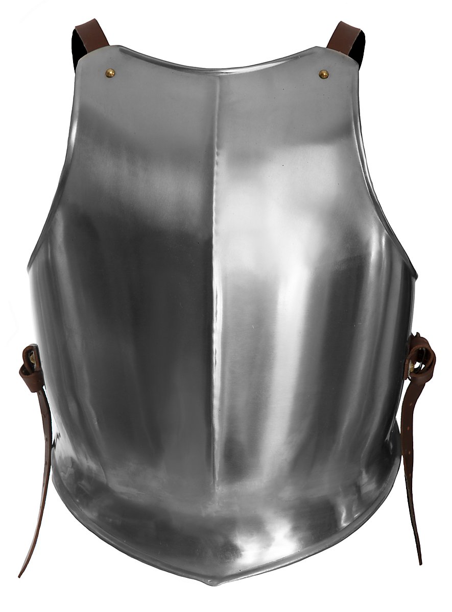 Einfache Brustplatten wie unser Brustpanzer - Söldner passen zu vielen spätmittelalterlichen Charakteren: ob Ritter, Söldner oder Landsknecht. All diesen Konzepten bietet sie eine bequeme und effektive Basis, zu der noch andere Rüstungsteile wie Plattenschultern oder Plattenarme getragen werden können.