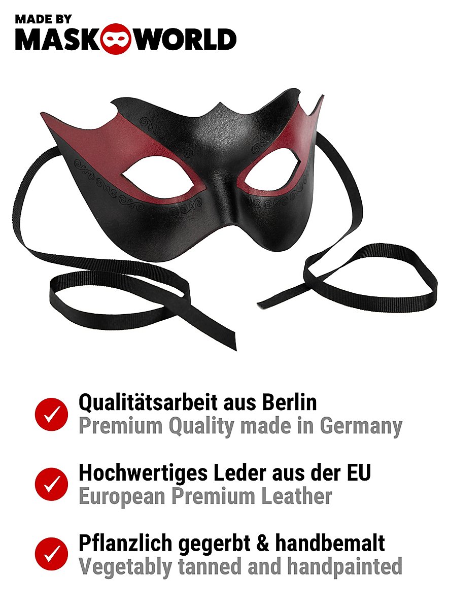 Da jede unserer Ledermasken in minuziöser Handarbeit gefertigt wird, kann die Abbildung leicht vom Original abweichen.