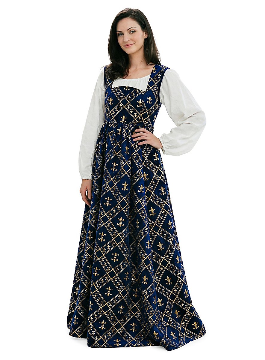 Mittelalterliches Kleid im Stil des 15. Jhds. mit feinem Fleur de Lis Muster.