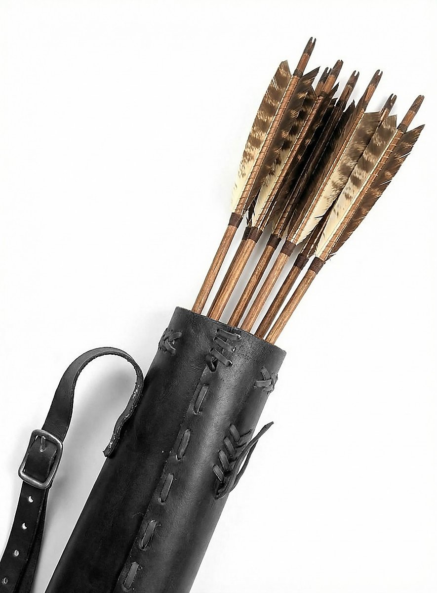 Gute Verarbeitung und schick. Für 5 Pfeile und Kurzbogen passend.