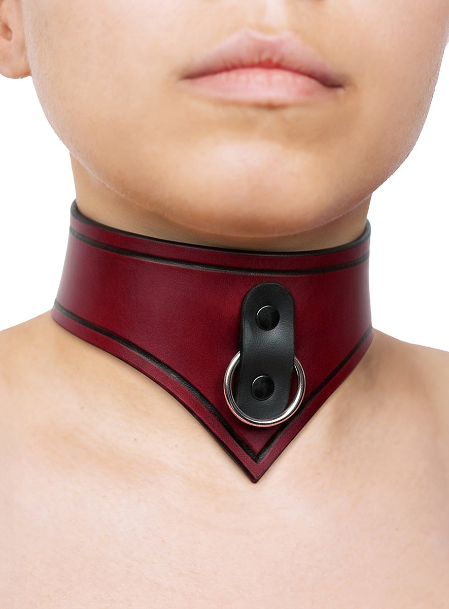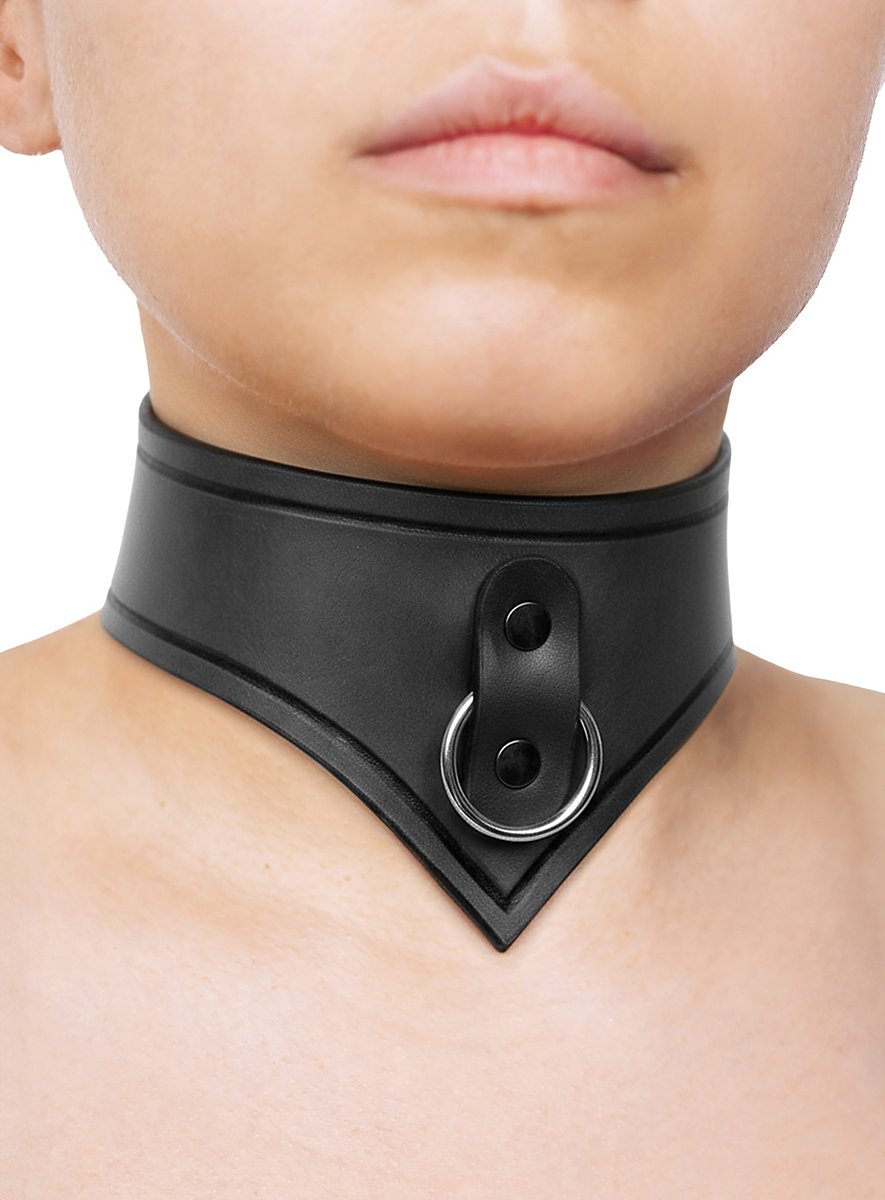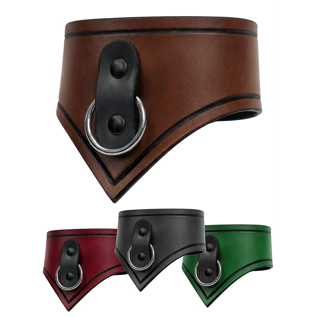 Schmuckes Sklavenhalsband aus Leder, von Hand gefertigt, pflanzlich gegerbt. Mit Metallring.