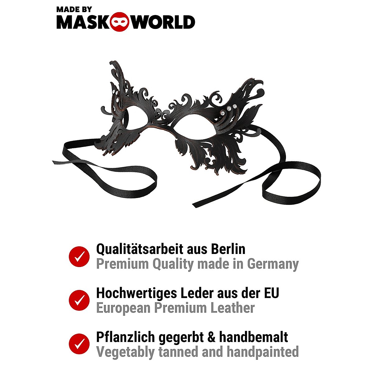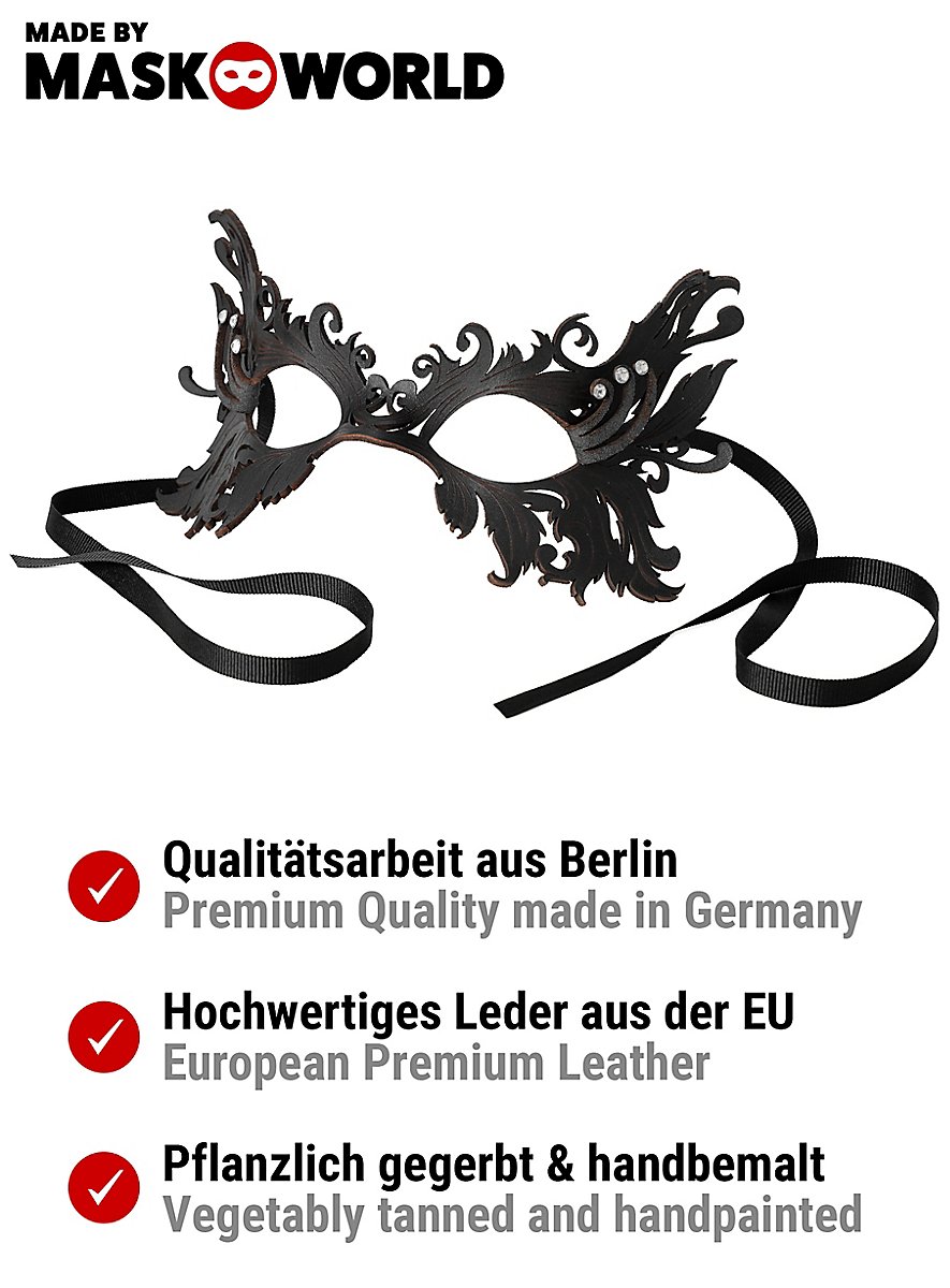 Elegante Ledermaske im venezianischen Stil von der Andracor Lederwerkstatt in Handarbeit gefertigt