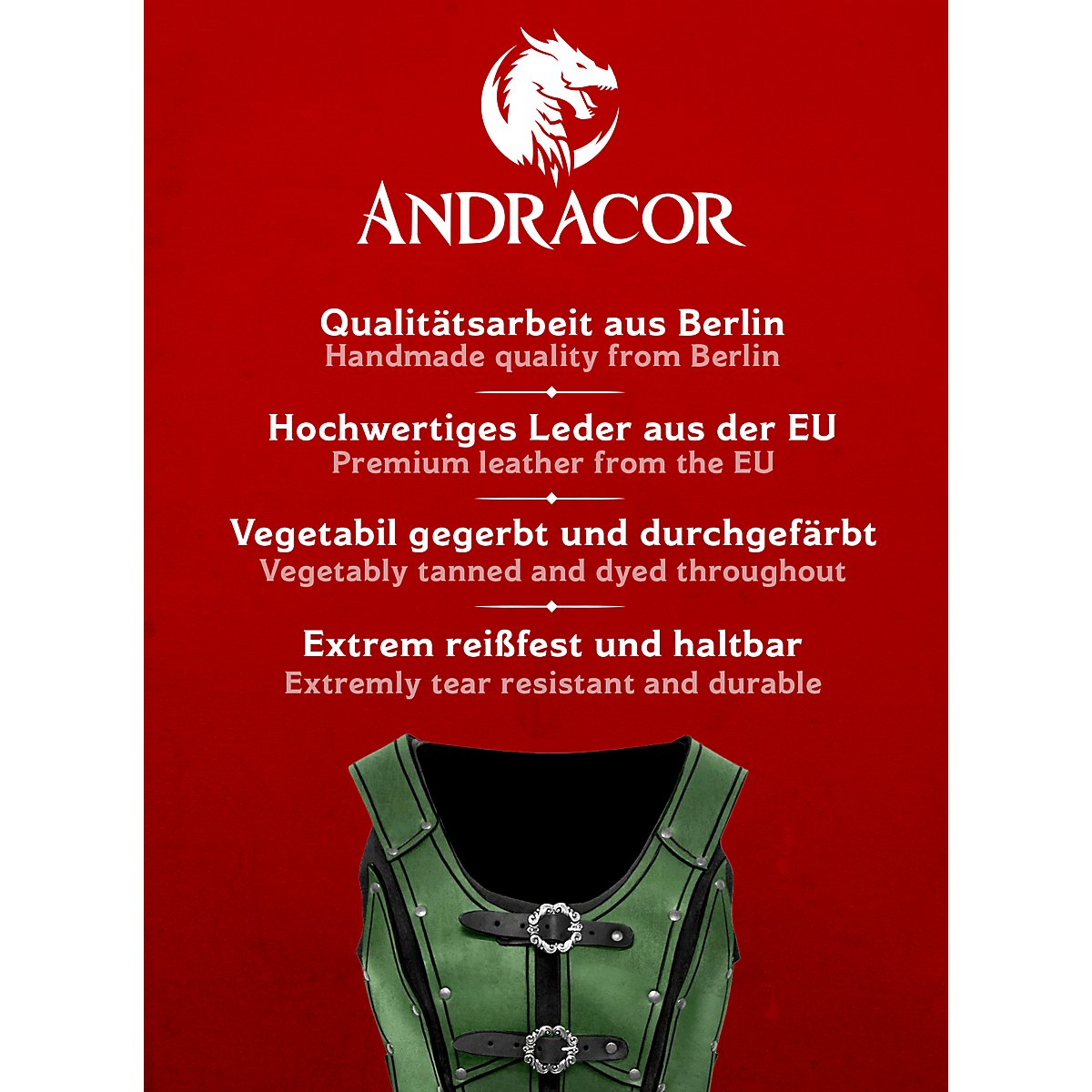 In Berlin handgefertigte Lederrüstung von Andracor - hergestellt aus 3 - 4 mm starkem Rüstleder!