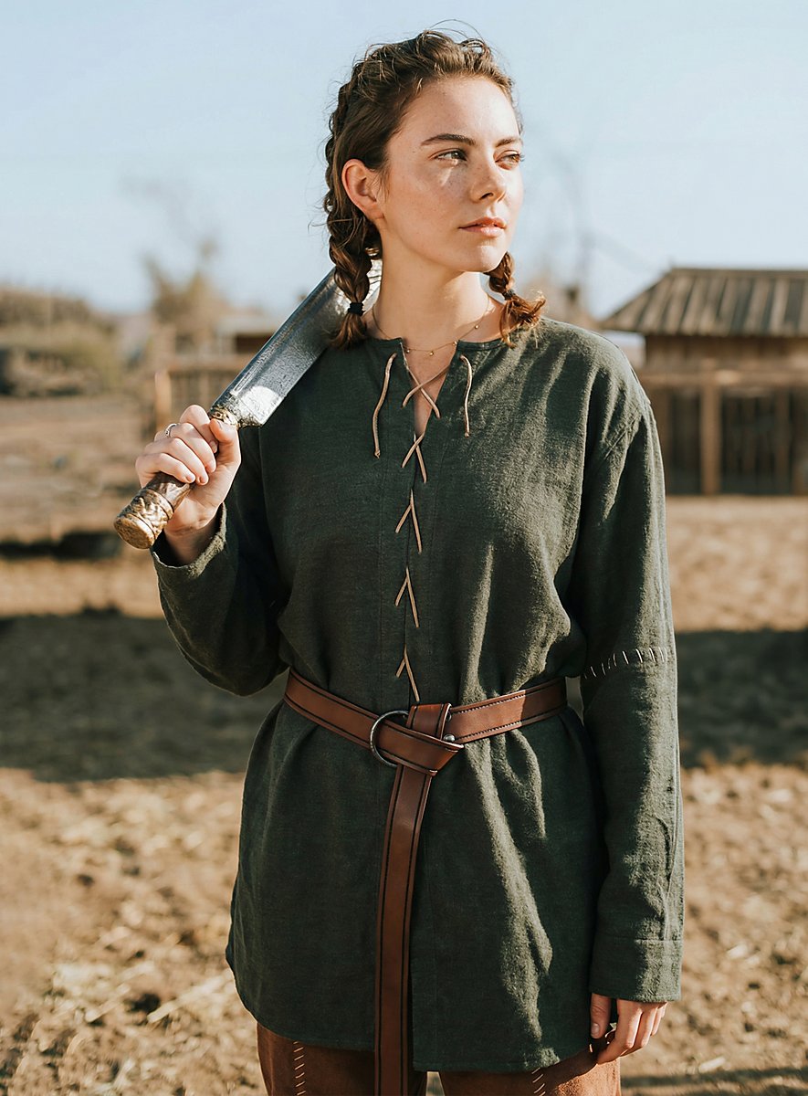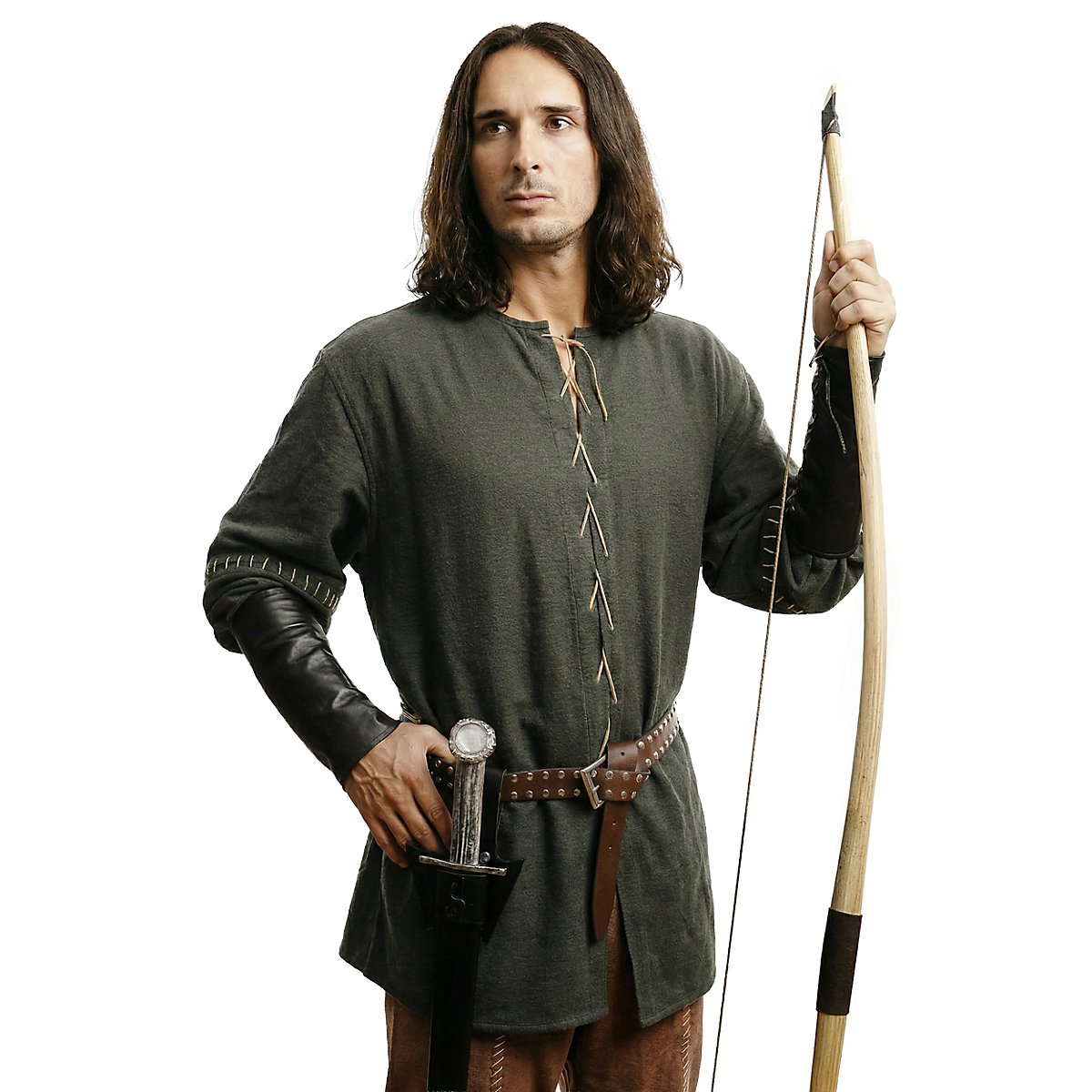 Langärmeliges Mittelalter Hemd mit frontaler Schnürung für Jäger und Waldläufer.