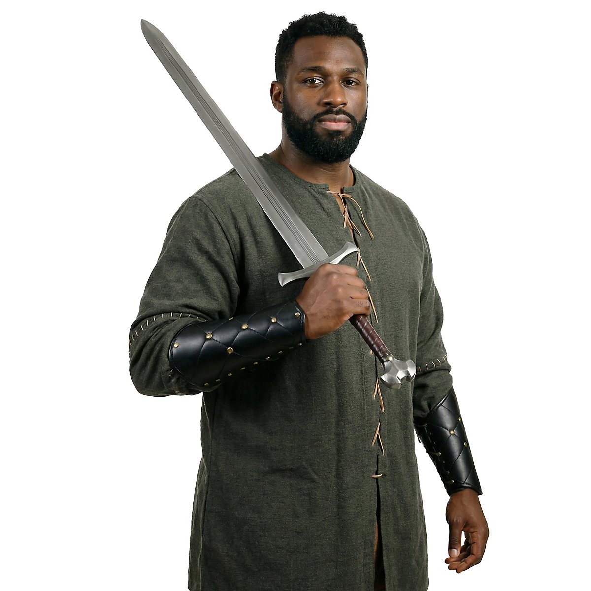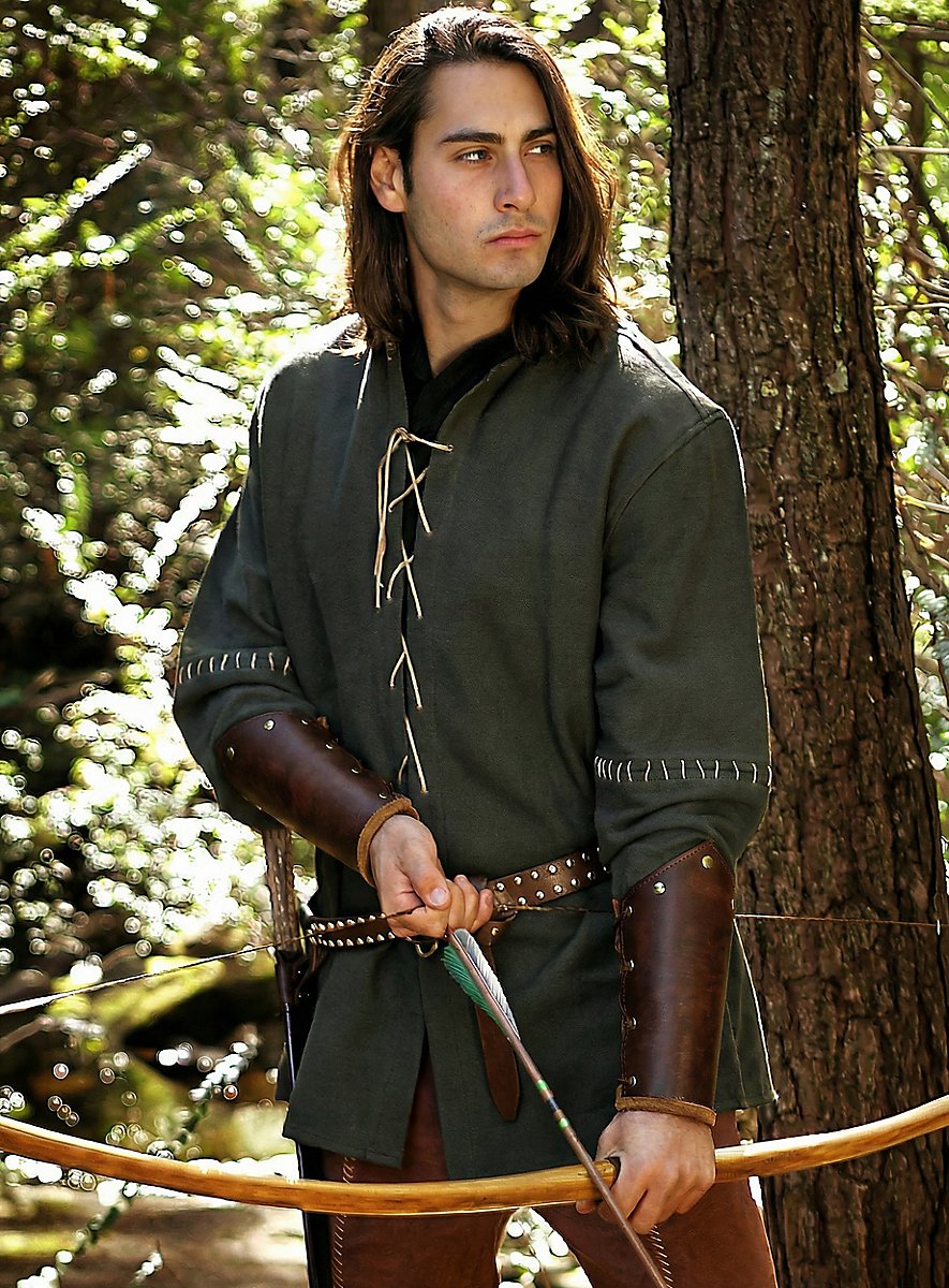 Mithilfe eines Lederbändchens lässt sich die auf der Vorderseite befindliche Schnürung nach eigenem Geschmack binden, während an den Ärmeln dezente Bast-Schnürchen für ein stilistisch rundes Erscheinungsbild sorgen. An den Ärmelenden finden sich funktionsfähige Manschettenknöpfe, was der Bewegungsfreiheit in hitzigen Gefechten zugute kommt. Mit der Mittelalter Tunika - Jagdmeister kann man sich sehen lassen!