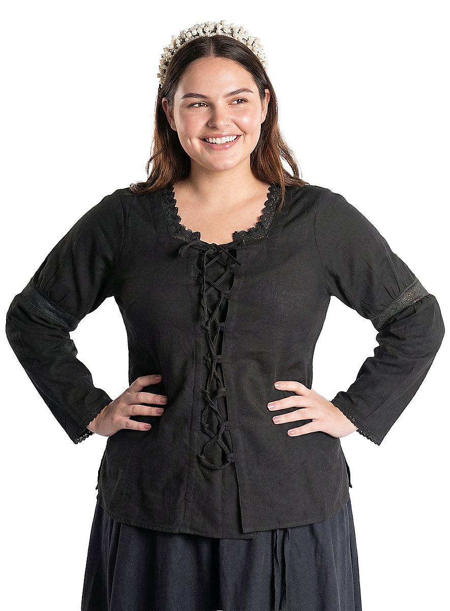 Eine elegante Mittelalterbluse mit feiner Spitze als Dekoration