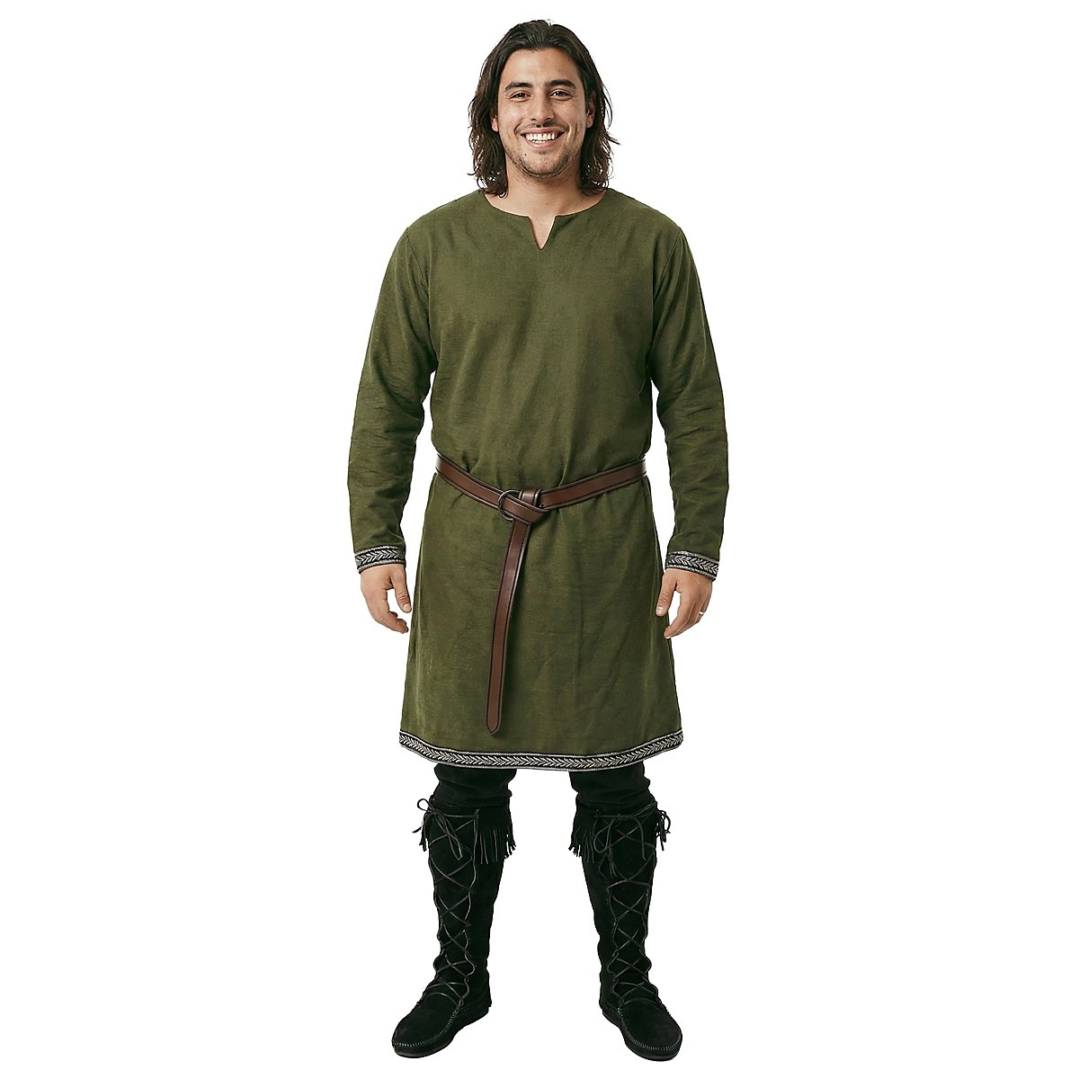 Der Stoff ist leicht, aber sehr widerstandsfähig und eignet sich deshalb sogar für den Einsatz im Unterholz. Die mittelalterliche Tunika mit Ausschnitt auf der Brust ist eine stilechte Ergänzung für eine Vielzahl von historischen Kostümen!