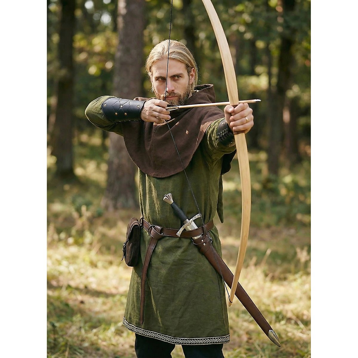 Mittelalter Gewand für Herren mit Gugel passend für einen Robin Hood und Little John.