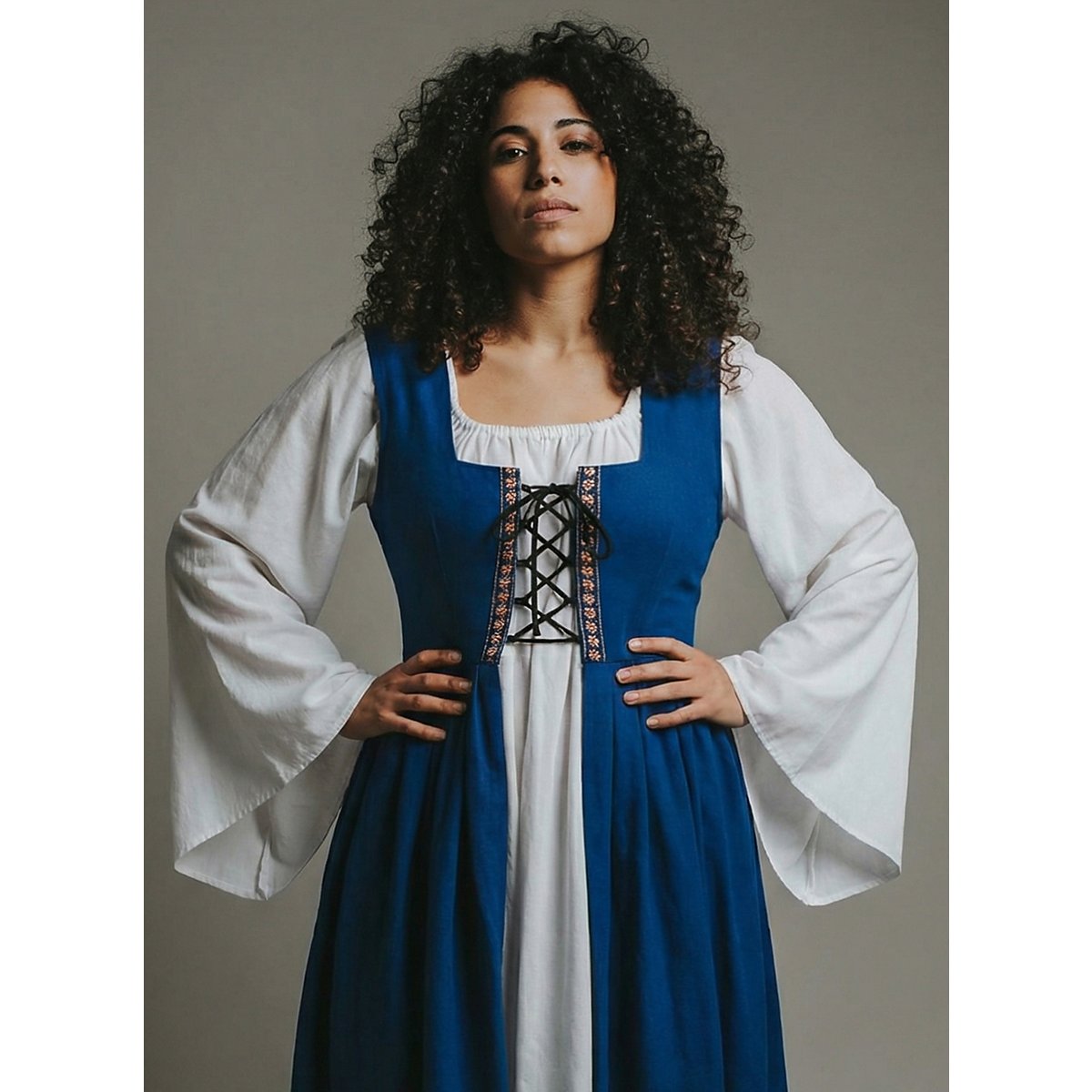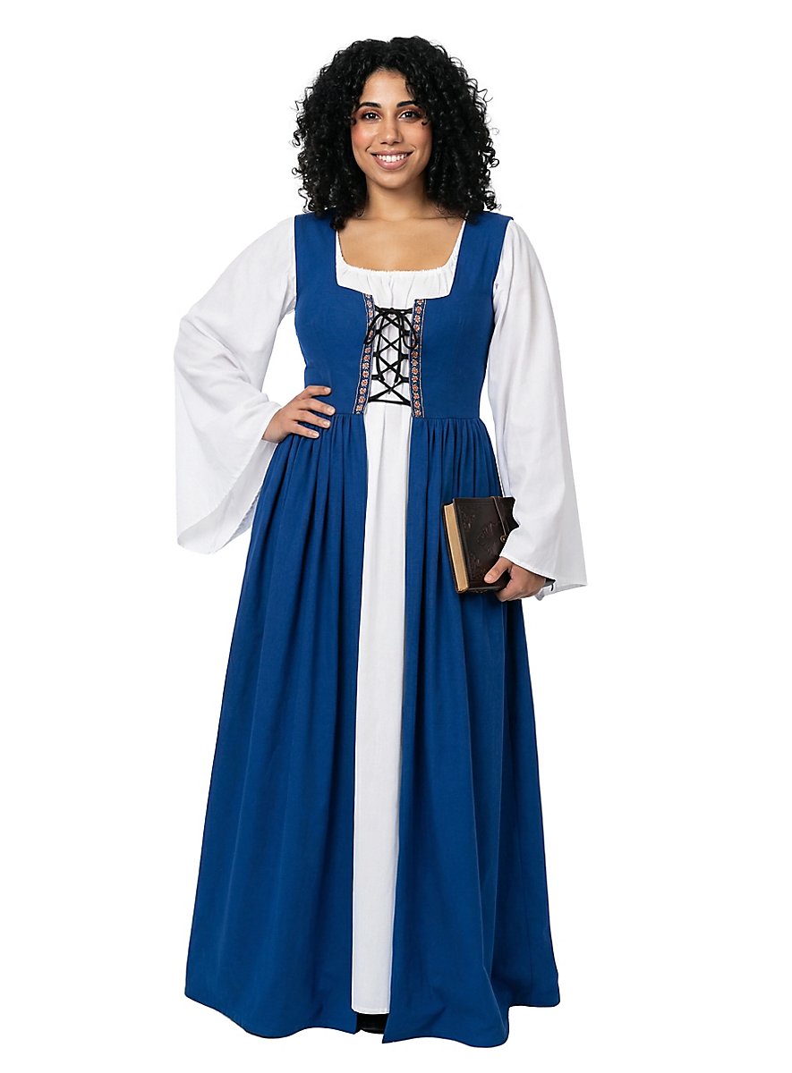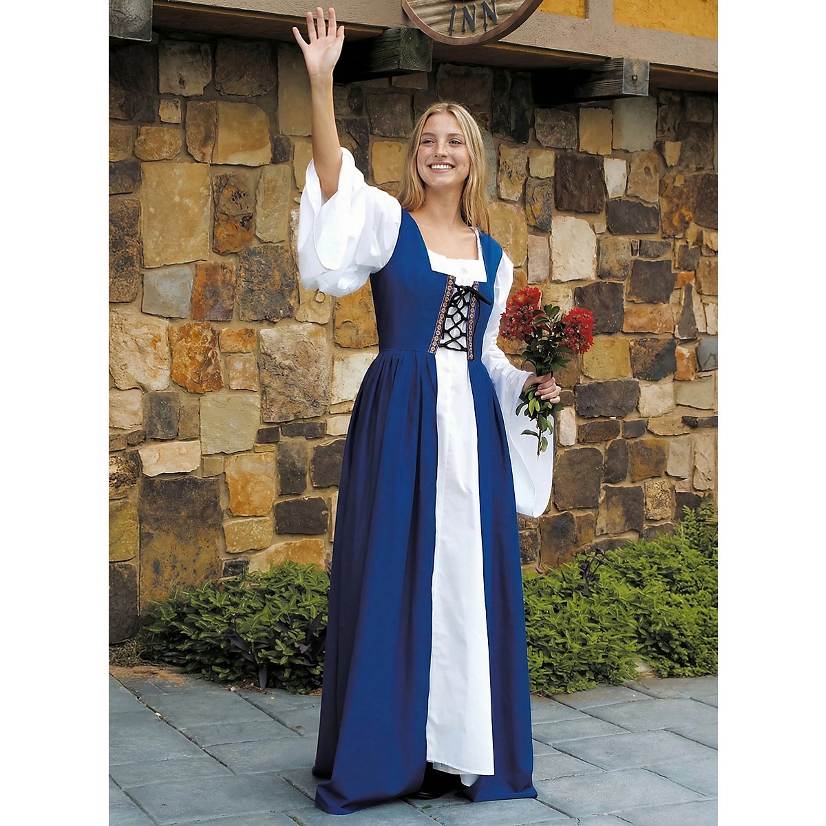 Dieses farbenprächtige Oberkleid im Stile des 16.Jahrhunderts sollte jede Maid in der Kleidertruhe haben. Das ärmellose, offene Kleid hat ein Schnürbustier mit Schmuckborten und verstärkenden Stäbchen für eine extra straffe Schnürung. Es ist vielseitig mit Chemisen, Unterkleidern und Unterröcken kombinierbar und kann so Sommer wie Winter getragen werden. Erhältlich in rot, grün und blau.
