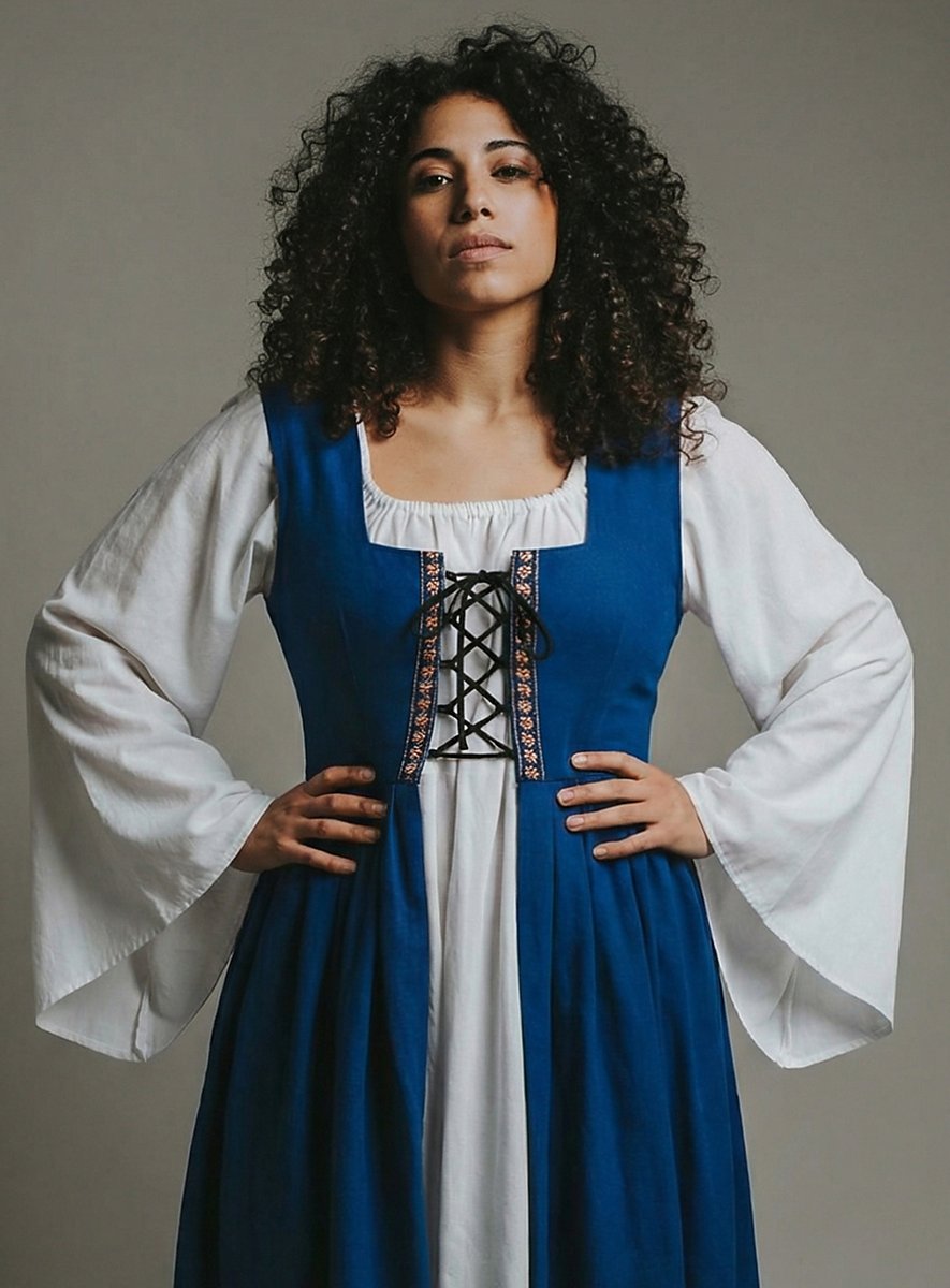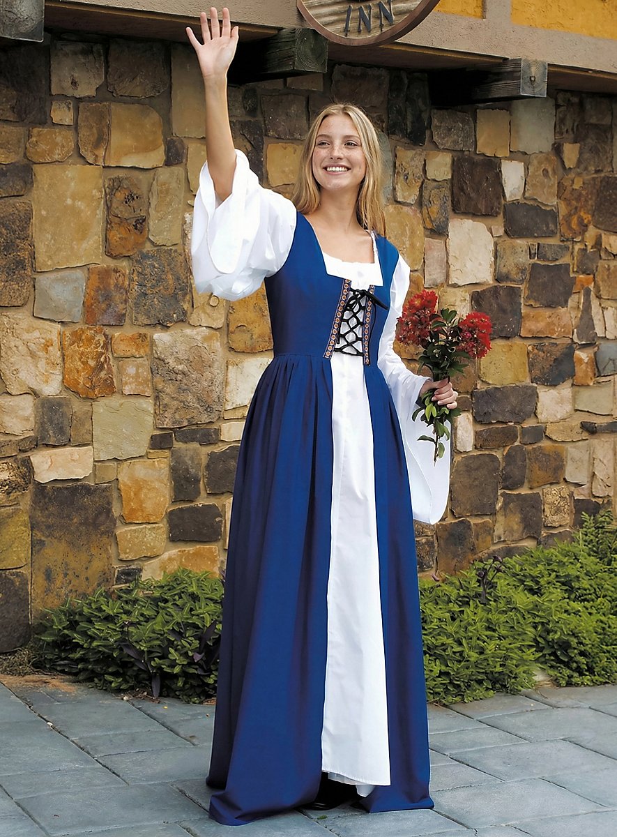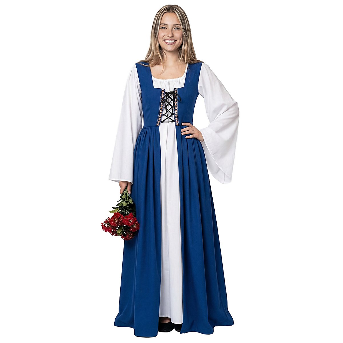 Dieses farbenprächtige Oberkleid im Stile des 16.Jahrhunderts sollte jede Maid in der Kleidertruhe haben. Das ärmellose, offene Kleid hat ein Schnürbustier mit Schmuckborten und verstärkenden Stäbchen für eine extra straffe Schnürung. Es ist vielseitig mit Chemisen, Unterkleidern und Unterröcken kombinierbar und kann so Sommer wie Winter getragen werden. Erhältlich in rot, grün und blau.