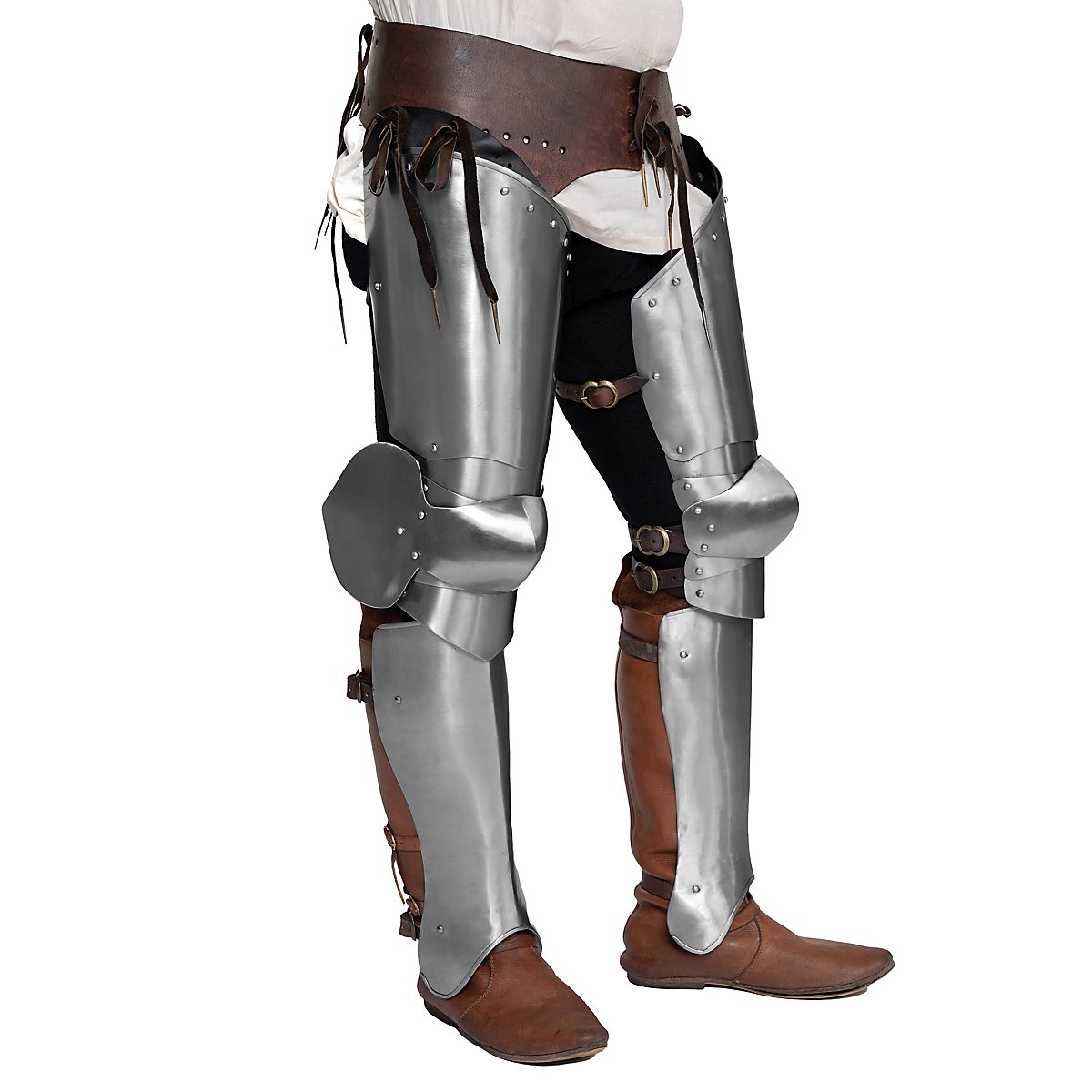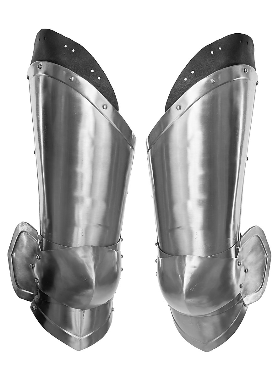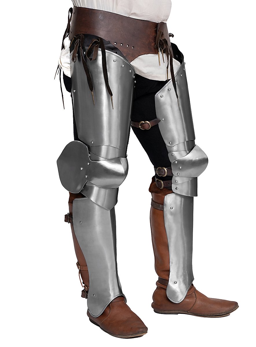 Diese Beinpanzer schützen eure Oberschenkel sowie die Knie. Plattenbeine machen einen besonders martialischen Eindruck und sind wichtig für das Bild des schwer gepanzerten Kämpfers. Ganz pragmatisch gesehen, ist ein gut geschütztes Knie immer ratsam, selbst wenn die Waffen nur aus Fiberglas und Schaumstoff sind.