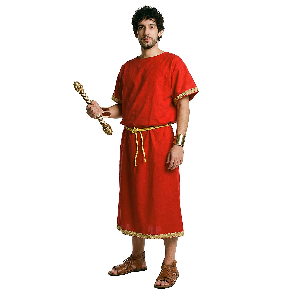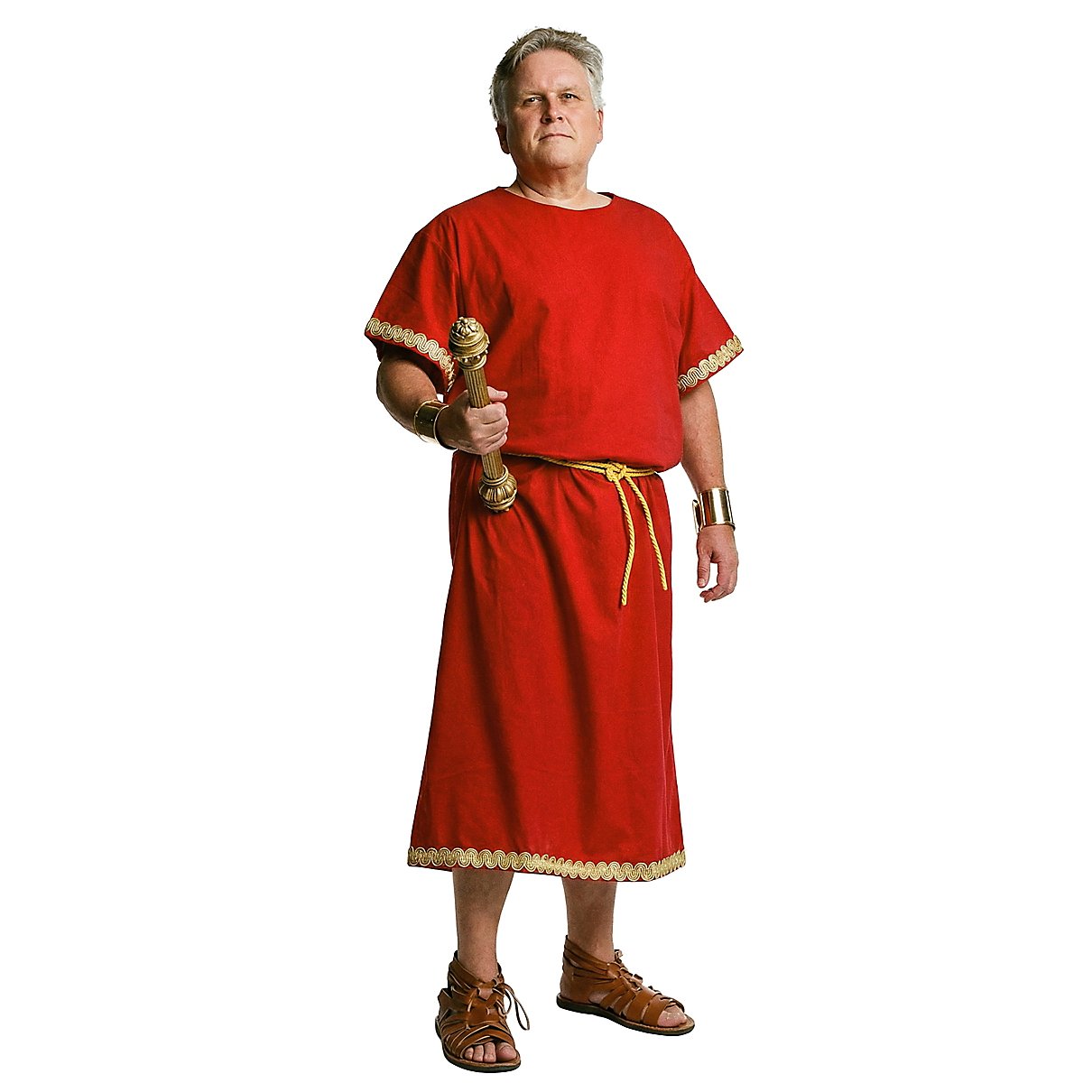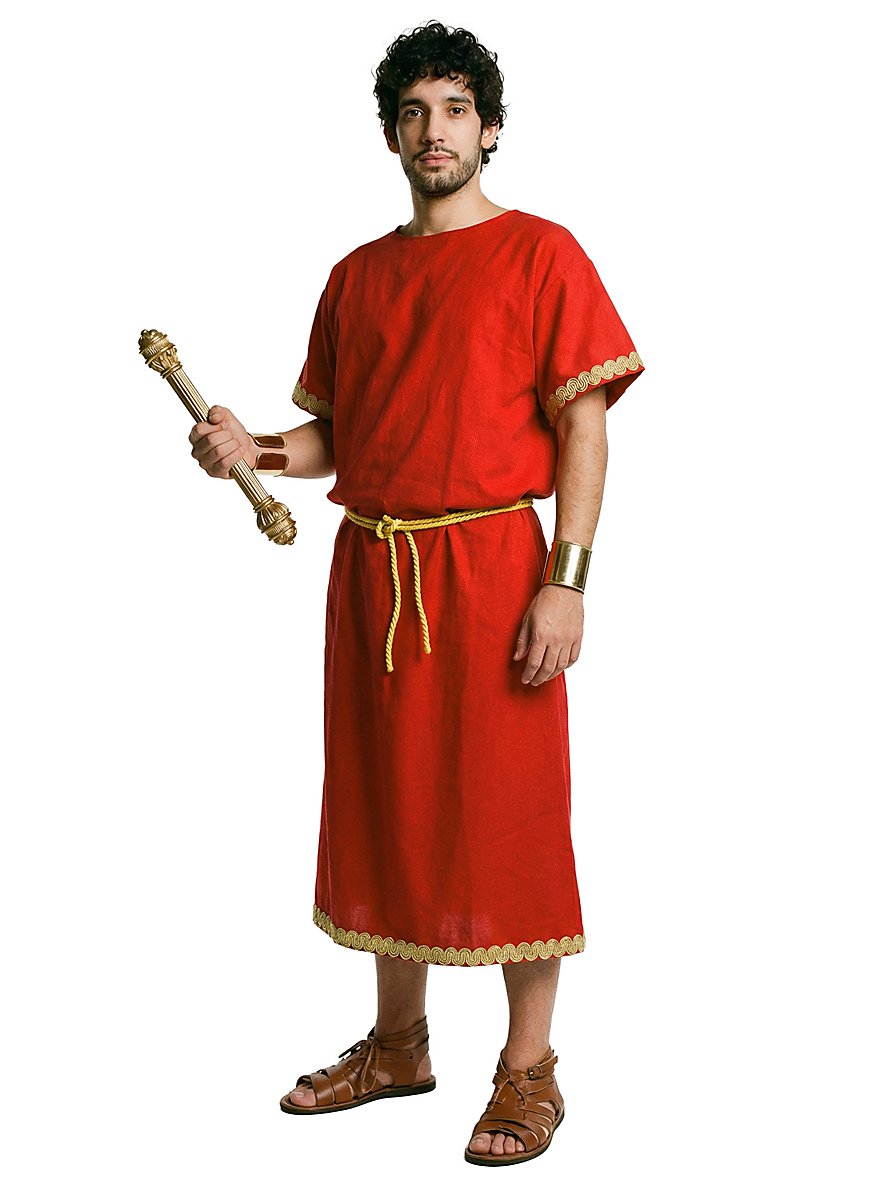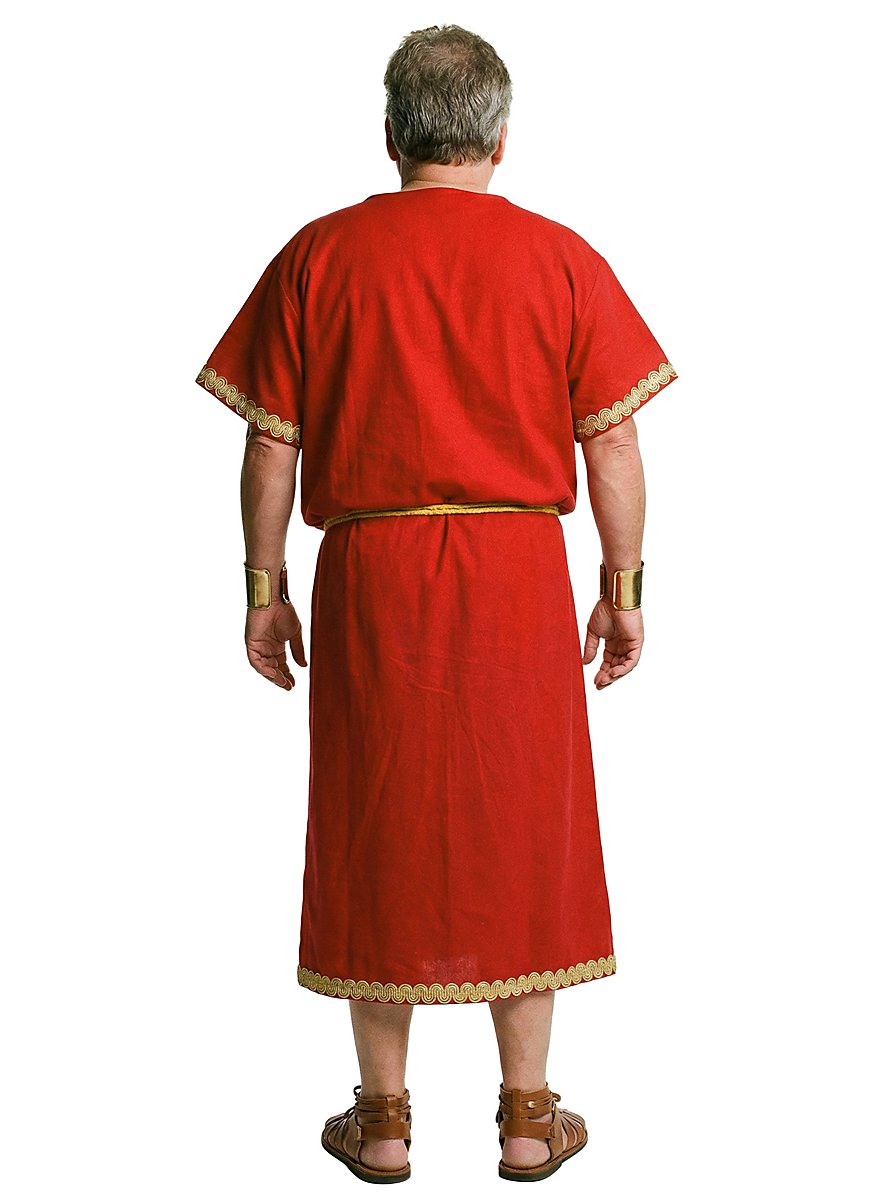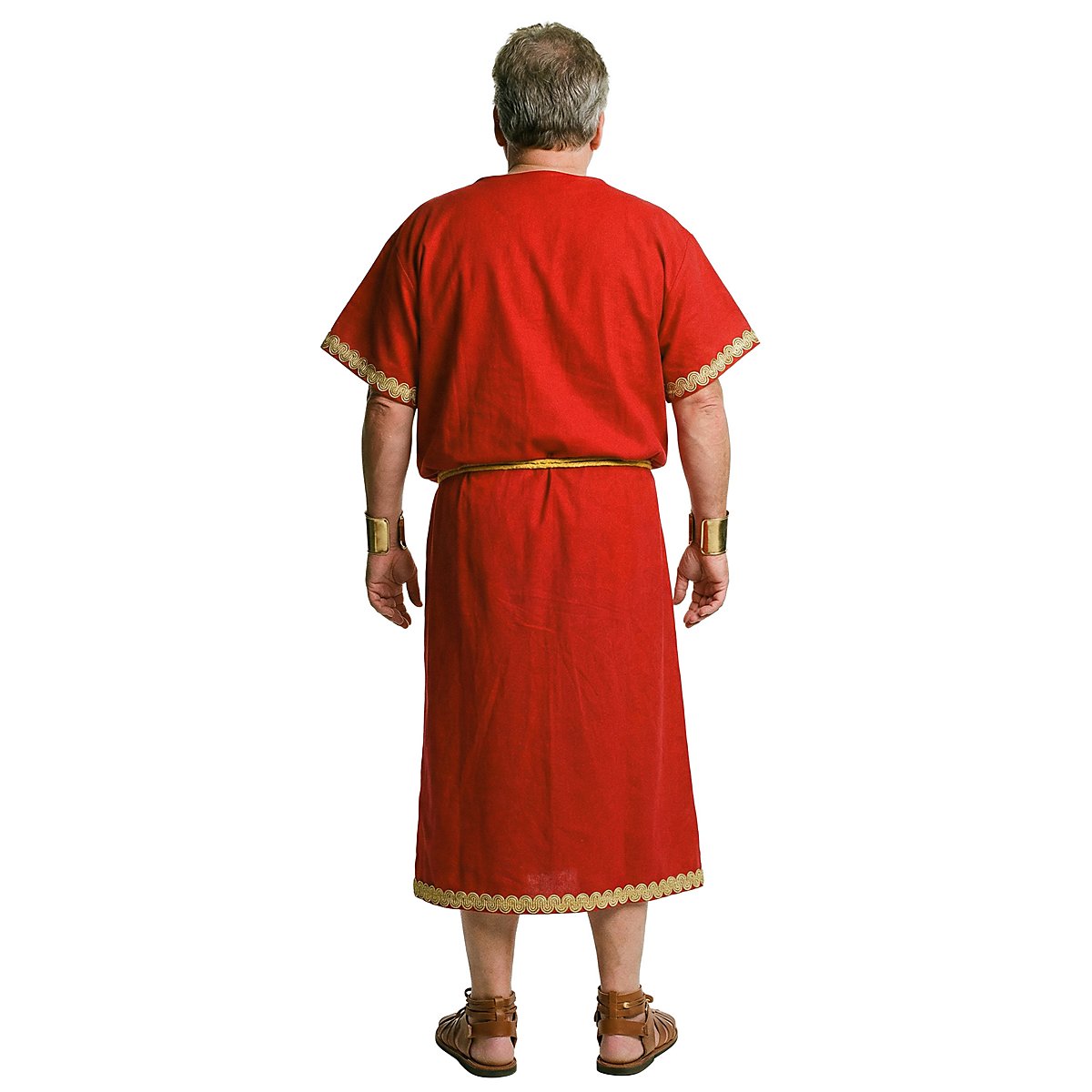 Wer würde nicht gerne wenigstens einmal im Leben zur antiken römischen Oberschicht gehören? Mit dieser klassischen Patrizier-Tunika ist es problemlos möglich. Dieses damals höchst populäre Kleidungsstück ist aus roter Baumwolle gefertigt und mit einer feinen Goldborte an Untersaum und Ärmeln verziert. Die Patrizier-Tunika wird mit einer goldenen Kordel um die Taille gebunden, welche das Kostüm auch dann zusammenhält, wenn sich die Lucullischen Genüsse auf die Hüften legen.