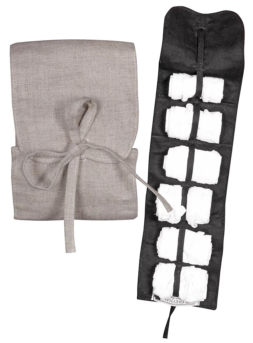 You are a LARP medicus or healer? The special bandage holder Khaya should be just the thing for you. It has space for 6 already integrated Calendula bandages. (3 short and 3 long ones). The bandages are hold together by a lace sewn into to inner side of the carrier and the holder opens up with losening a simple lace.