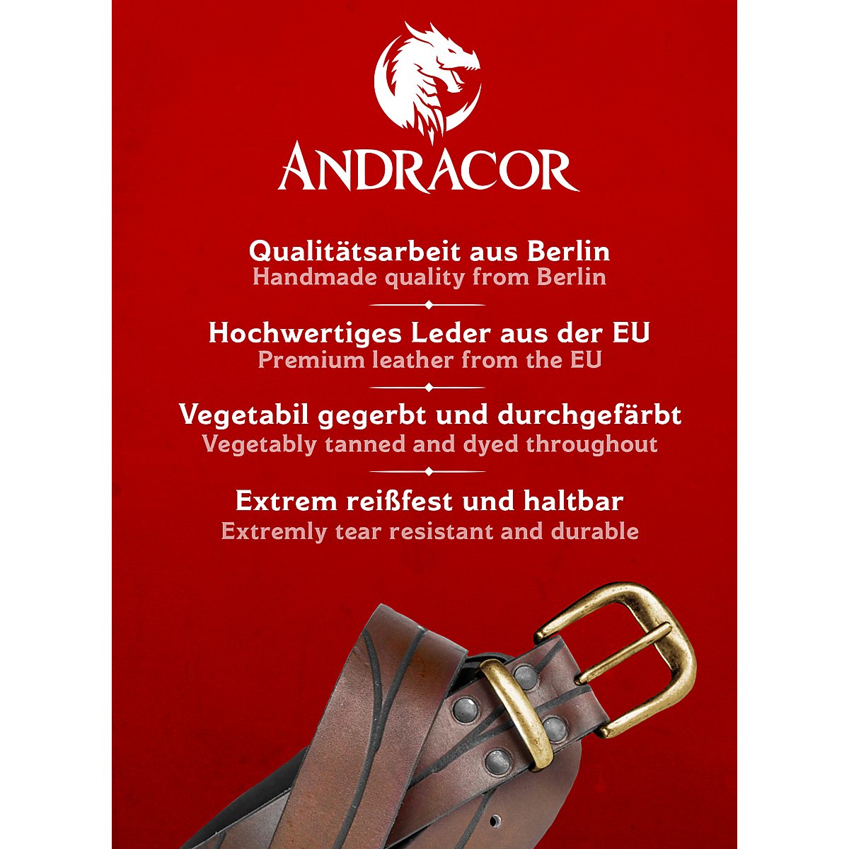 Elven Leather long belt from Andracor made of genuine, 3 - 4 mm thick leather, vegetable tanned and handmade in Berlin.