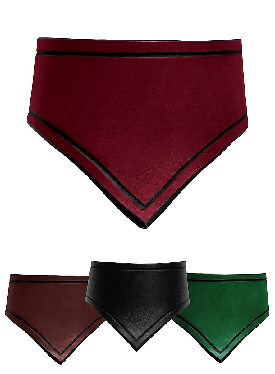 Our leather collar serves the harmonious completion of different LARP outfits and thanks to its elegant cut and decoration it does this quite well. It is made by hand from 3 - 4 mm thick leather armor, vegetable tanned and is laced in the neck with the included leather strap individually matching. Metal eyelets prevent the holes from tearing out. The leather collar - maid is available in black, brown, green and red.