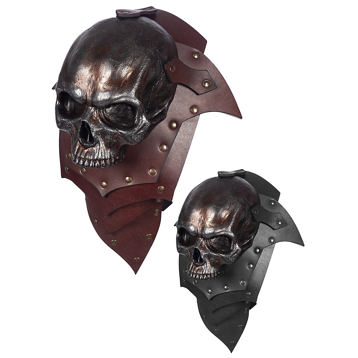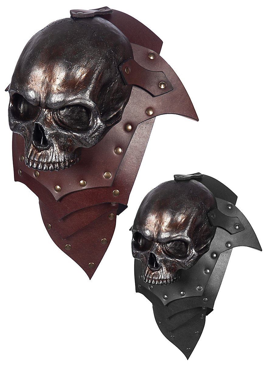 The skull is made from robust casting resin and can withstand even the most fierce battle. It's then fixed to the pauldron with a leather strap. Additional straps on the arm allow the wearer to firmly affix the pauldron to their arm, increasing mobility in combat.