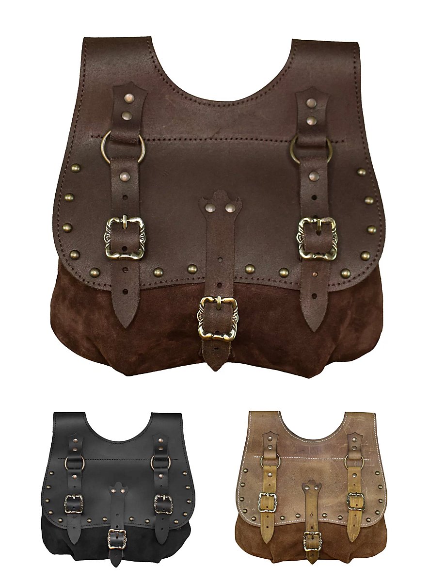 This leather bag has been authentically crafted by skilled artisans according to medieval models. The use of traditional techniques in both sewing and tailoring the bags makes each piece unique.