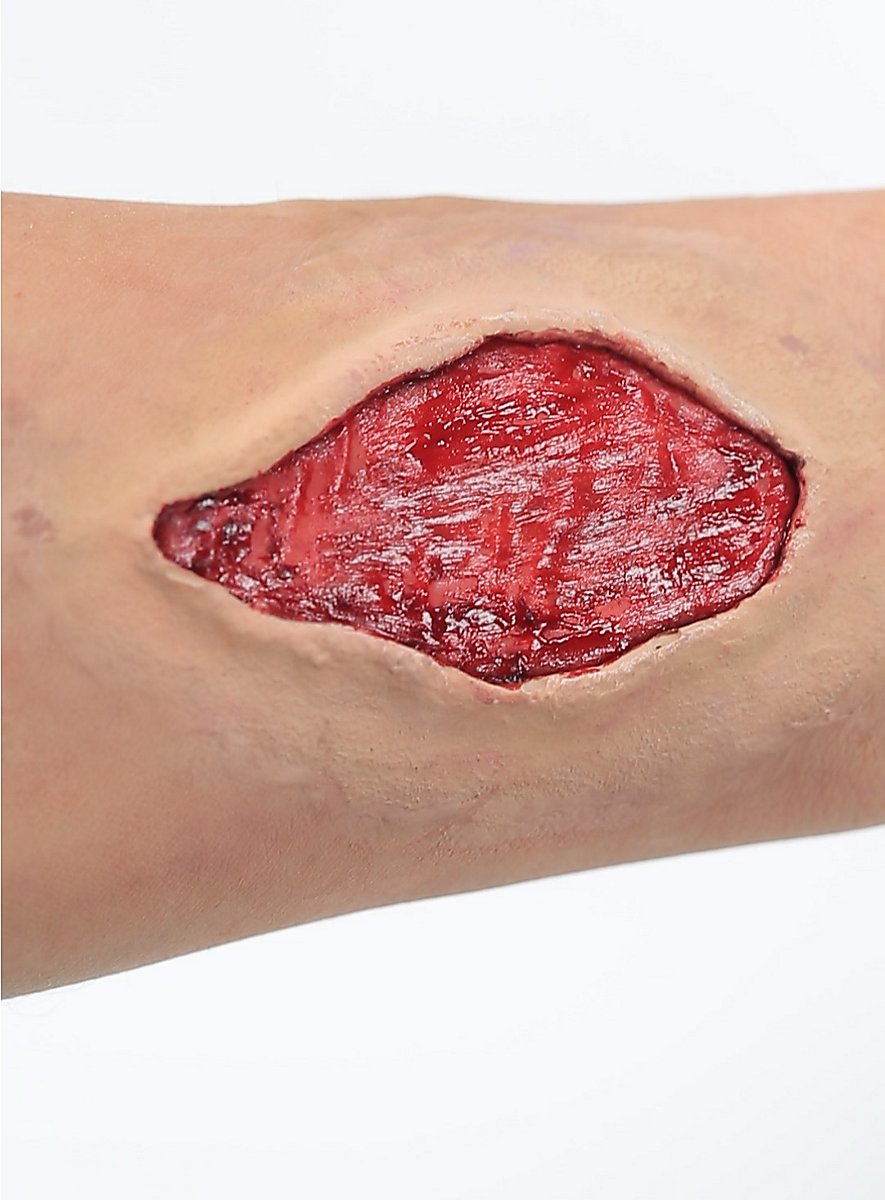With this professional Open Flesh Wound Kit, you can quickly and easily transform yourself into a zombie or any other fantasy character. All maskworld.com products, including this Open Flesh Wound Kit, undergo rigorous quality control to ensure that they provide professional-quality transformations. All maskworld.com latex prosthetic pieces are handcrafted. Latex features extreme elasticity and durability. Due to these properties, they maintain their high level of wearing comfort and highly realistic appearance even if you use them frequently. Mastix spirit gum features excellent grip and optimal skin-compatibility.