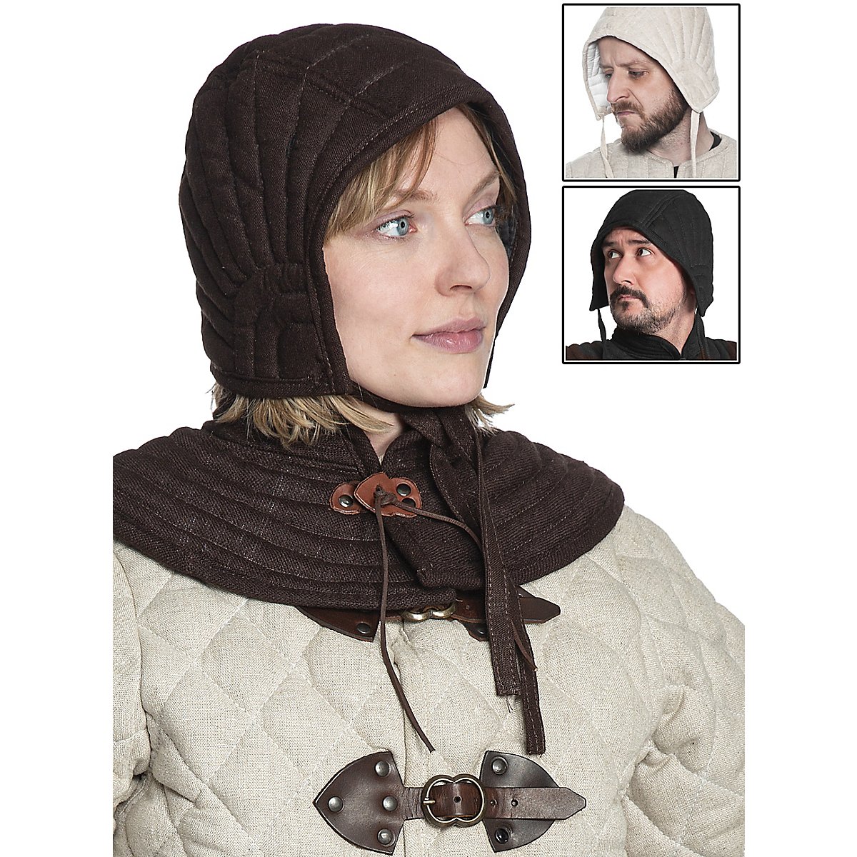 A must-have-basic under every helmetetst is the padded arming cap Eisenbrück. It reduces collision during hits to the head and gives the helmetetst a tighter fit. With chainmail hoods its imperative to keep hairs from dangling into the chain or prevent that chain oil comes in contact with your hair. It has a nice fitting to any headsizes up to 62 cm.