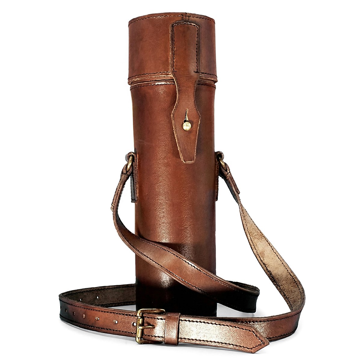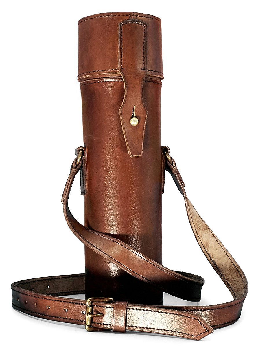 The Scroll Holder brown is made of 4mm thick leather and also features a 160 cm long and adjustable shoulder strap. To prevent its precious contents from being lost in the bustle, the leather lid is kept closed with a tab closure.