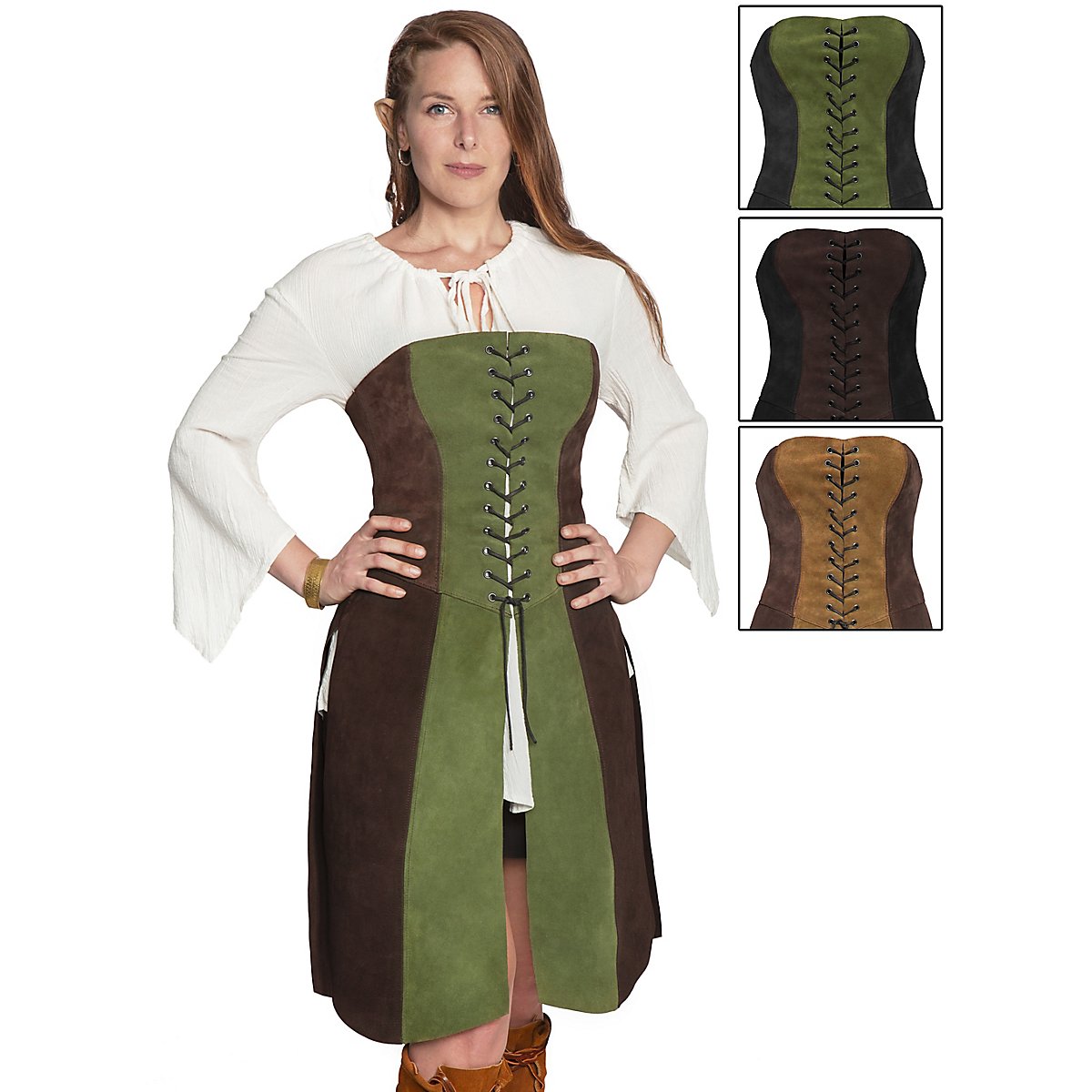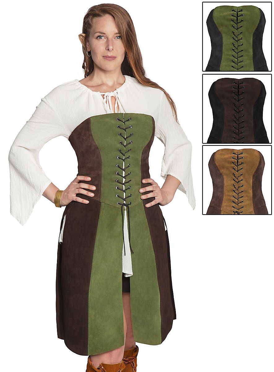 Our two-tone bodice with skirt for female mages and warriors from the Andracor leather workshop in Berlin.