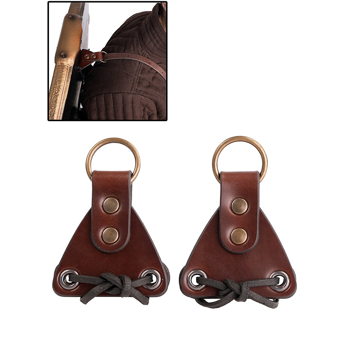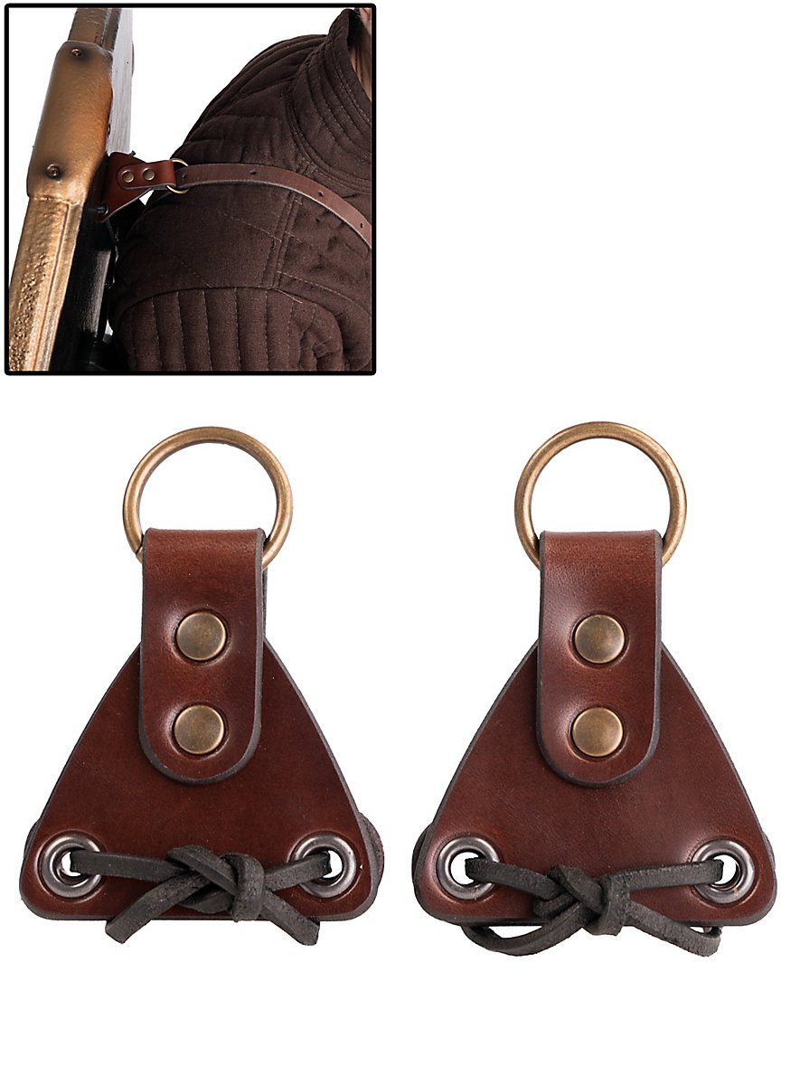 • Plaquettes de fixation en cuir pour empêcher le bouclier de se détacher