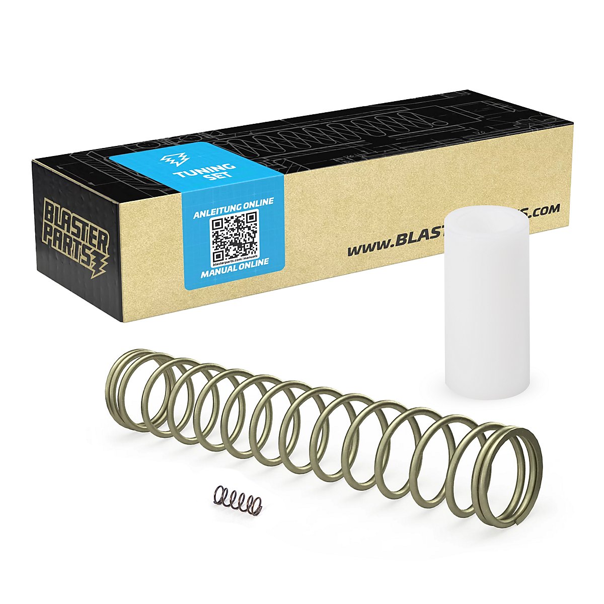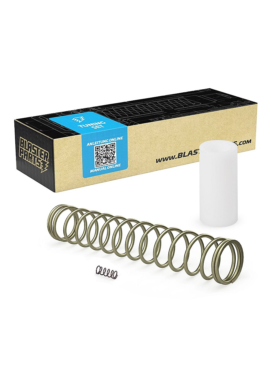 Bénéficiez d'une augmentation de performance impressionnante allant jusqu'à 70% grâce au ressort de tuning plus puissant d'une masse équivalente d'environ 7 kg. Le 'Guiding-Shell' (douille de guidage) inclus assure un guidage propre du piston, tandis que le ressort de gâchette (catch) renforcé empêche les déclenchements incontrôlés et erronés du blaster. Le résultat est une portée considérablement augmentée d'environ 25 à 30 mètres et un blaster plus fiable.