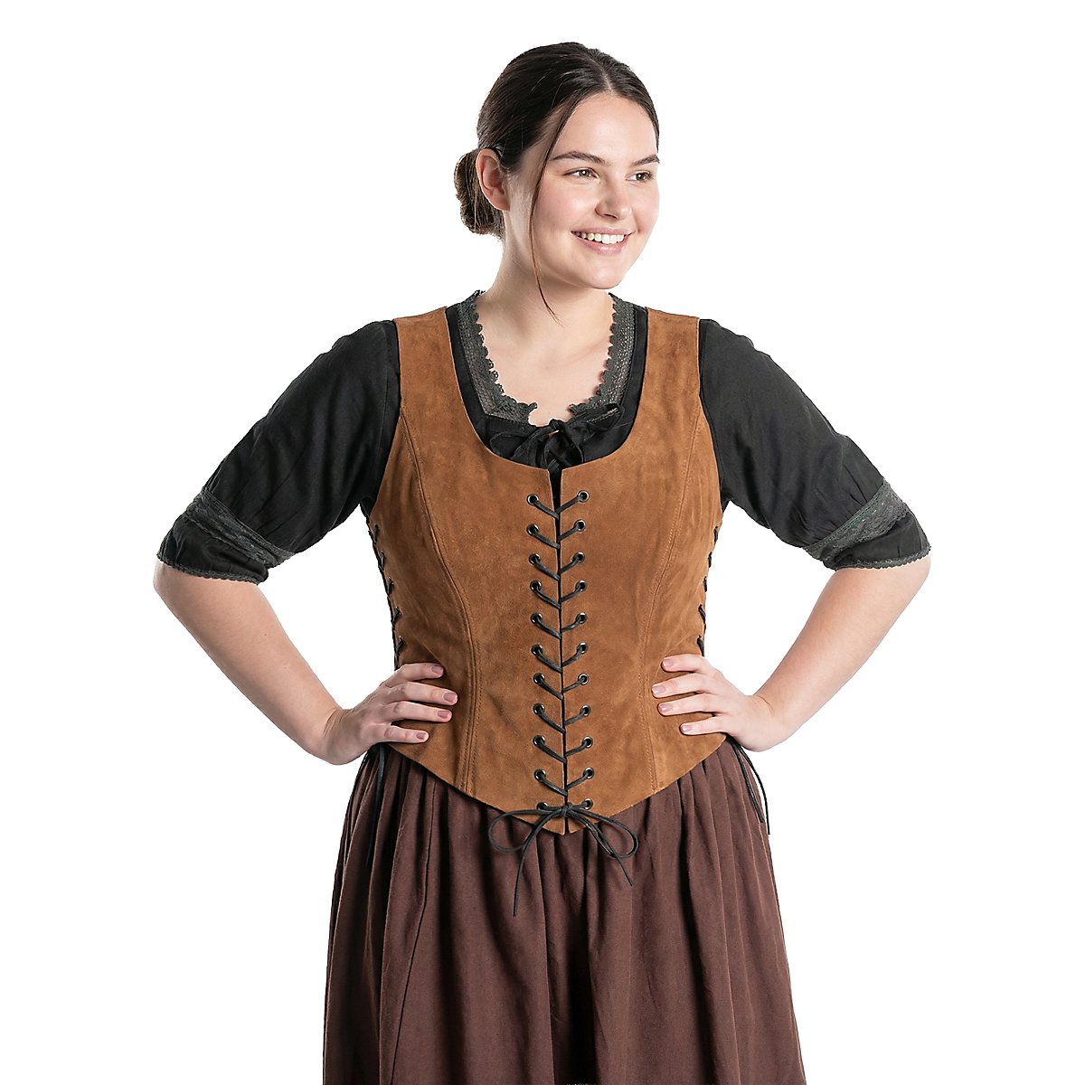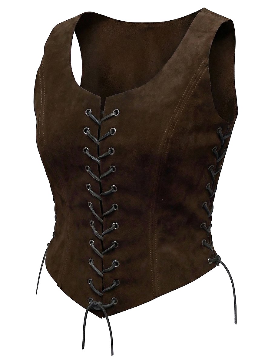 Notre bustier à lacets en cuir velours est un vêtement très polyvalent avec de nombreuses qualités. Le cuir velours précieux est très résistant, et grâce à sa surface douce, il est exceptionnellement agréable contre la peau. Le bustier flatte la silhouette et sa coupe étroite souligne les formes féminines. Le bustier se lace sur le devant ainsi que sur les côtés à l'aide de trois lanières en cuir incluses à la livraison (mesurant chacune 1,5 m de long), ce qui permet un réglage individuel. À propos du laçage : des œillets métalliques tout autour du bustier empêchent la matière de se déchirer. Le bustier à lacets en cuir velours est disponible en noir et aussi en marron foncé, marron clair et vert.