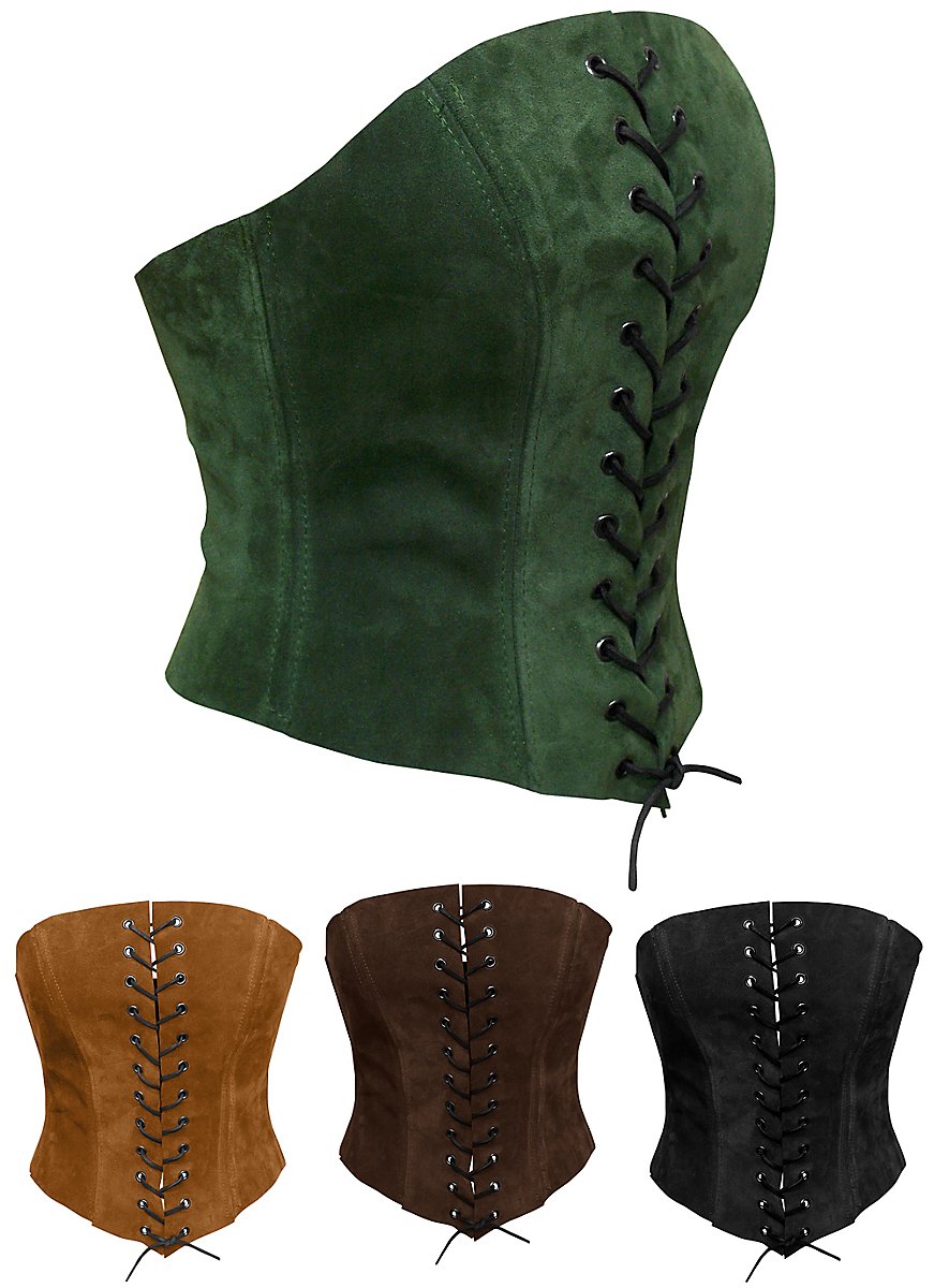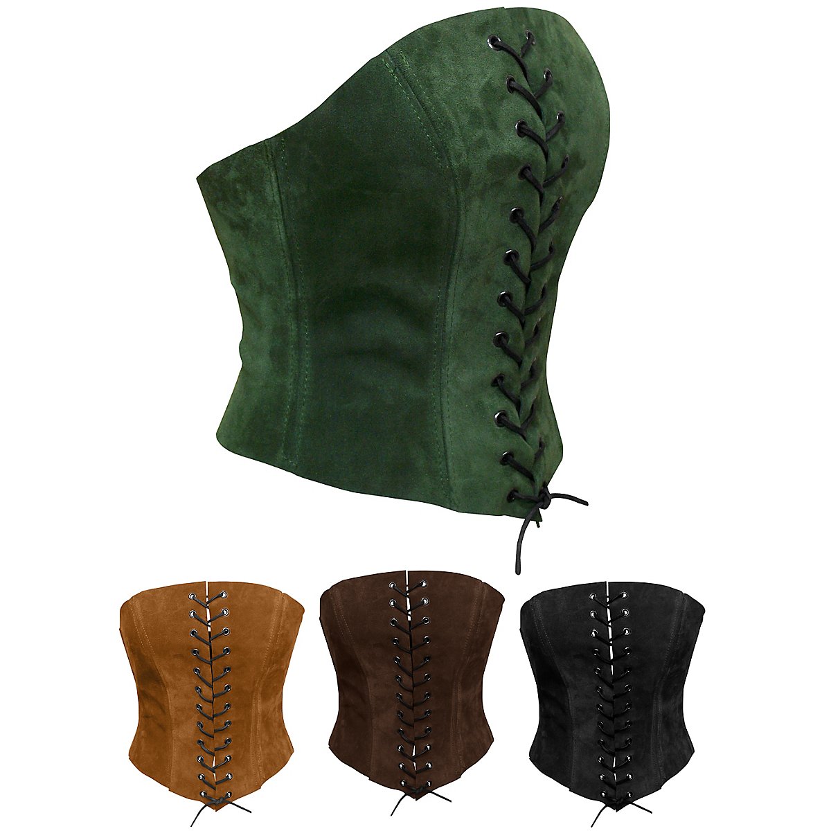 Ce bustier en cuir velours est très polyvalent, car il convient aussi bien pour un déguisement du Moyen Âge que pour une tenue fantasy ou steampunk. Il éblouit par sa beauté simple et son charme rustique, grâce aux laçages sur le devant et sur l'arrière. Le cuir velours de qualité supérieur est indéchirable et flatte grâce à la nature souple et agréable de la peau utilisée. Il met en valeur les formes féminines de celle qui le porte grâce à son laçage ajustable. Les liens en cuir traversent des œillets en métal solide qui évitent aux trous de se déchirer.
