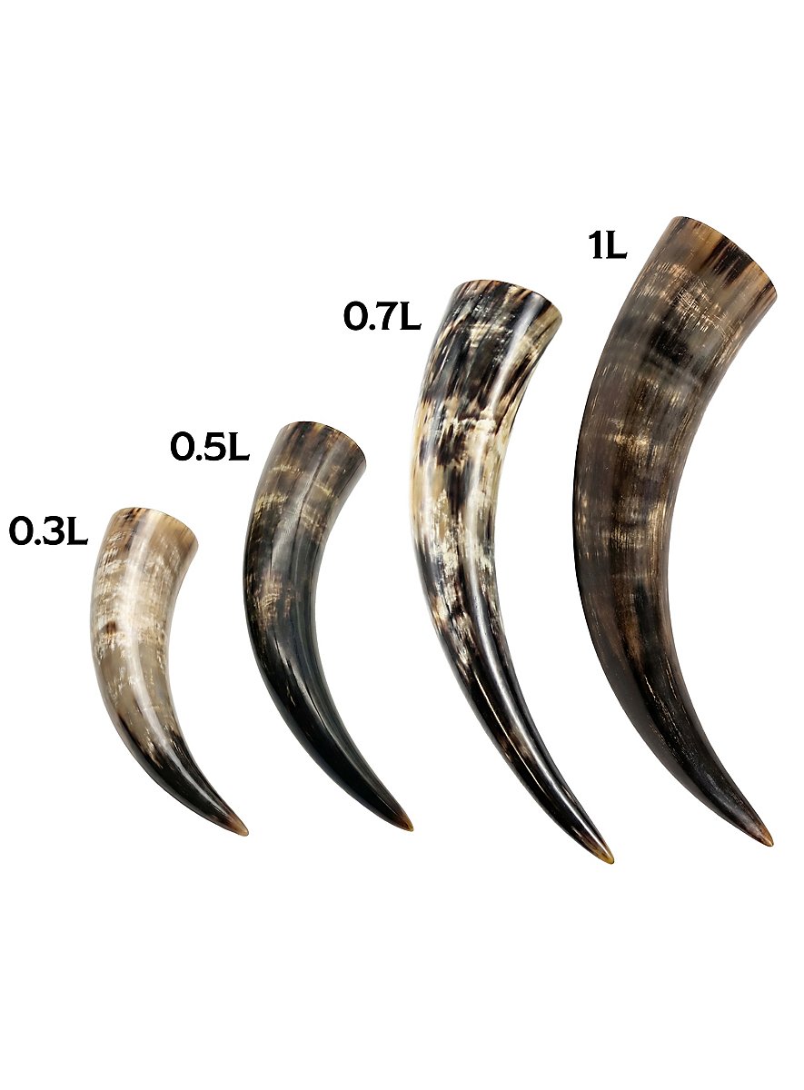 Cette superbe corne à boire d'une capacité de 0,3 litre est le compagnon idéal des Vikings, guerrier nordiques et adeptes du Moyen Âge. Si vous souhaitez installer une ambiance authentique sur un campement de GN, vous ne pouvez pas vous tromper avec une corne à boire ! Cette corne à boire est fabriquée à partir d'une corne de bovin domestique (Bos Taurus) brésilien ou nigérian, qui est l'espèce la plus proche des bœufs sauvages d'antan.