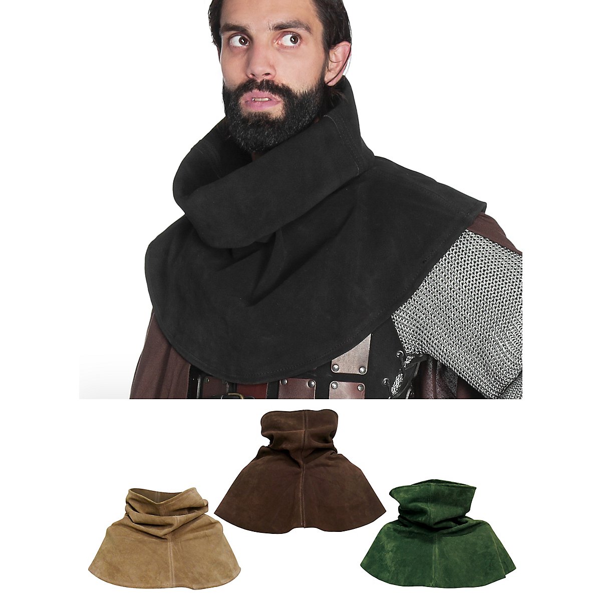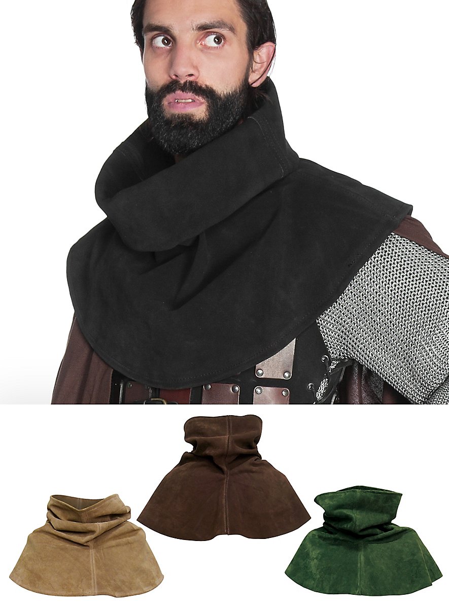 Notre col en cuir plaira certainement à ceux qui cherchent à ajouter une touche insolite mais très chic à leur tenue du Moyen Âge. Il est fabriqué à la main en cuir velours résistant avec col montant et il recouvre les épaules. Le col montant cache la partie inférieure du visage, ce qui donne un air téméraire à celui qui le porte. Le col en cuir est vraiment très polyvalent, malgré son apparence insolite, et s'associe merveilleusement à une tenue de fourbe mercenaire, par exemple, ou bien il peut être porté avec un tricorne assorti.