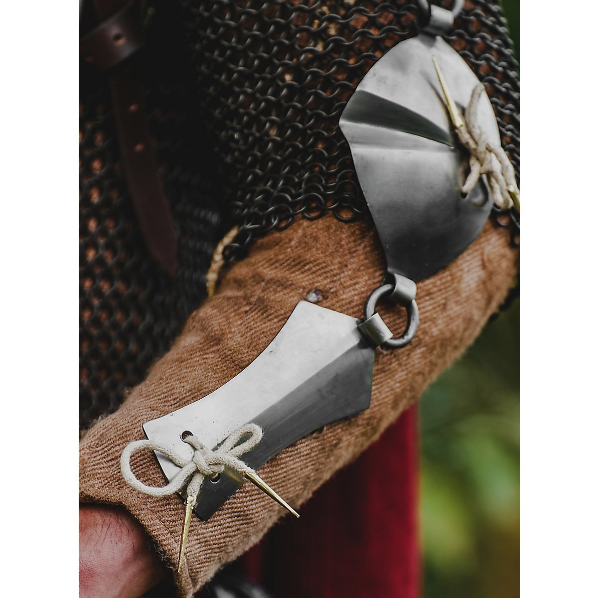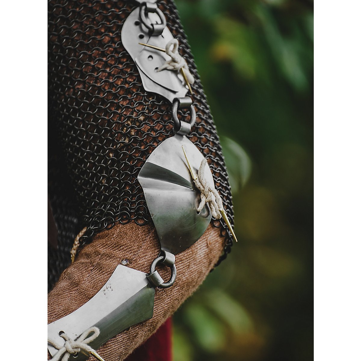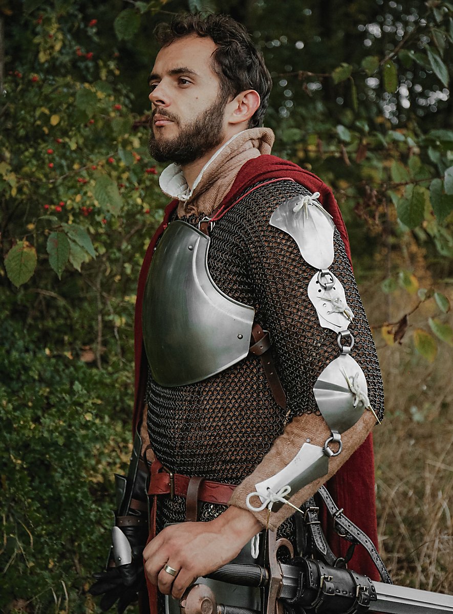 Les "Jack Chains" constituent une variante particulière des protections de bras. Elles ne sont pas seulement esthétiques, elles offrent aussi une bonne protection sans trop limiter les mouvements. L'idéal est de les fixer directement sur un gambison à l'aide de longues sangles.