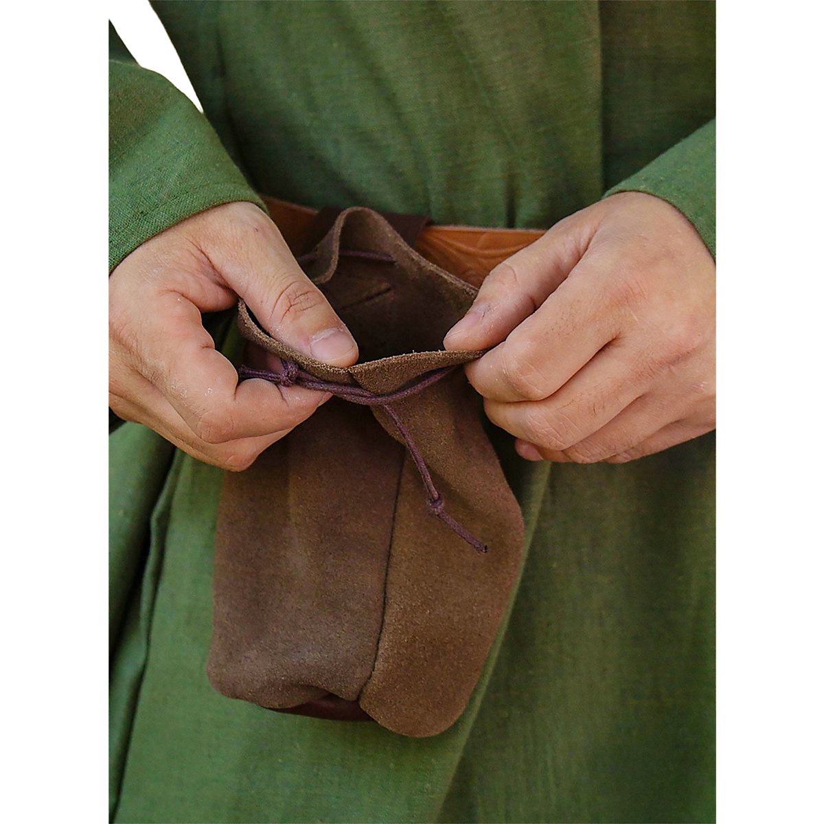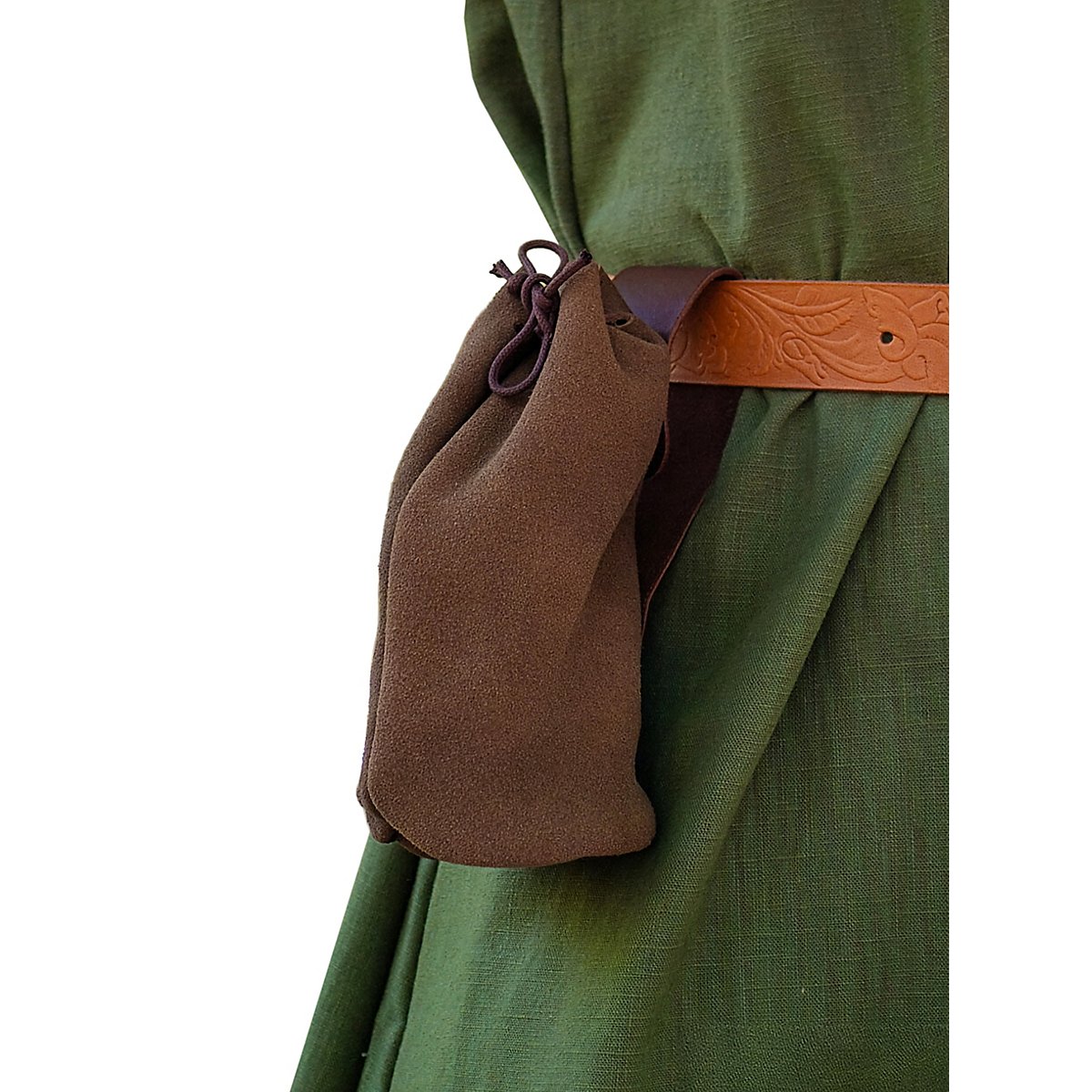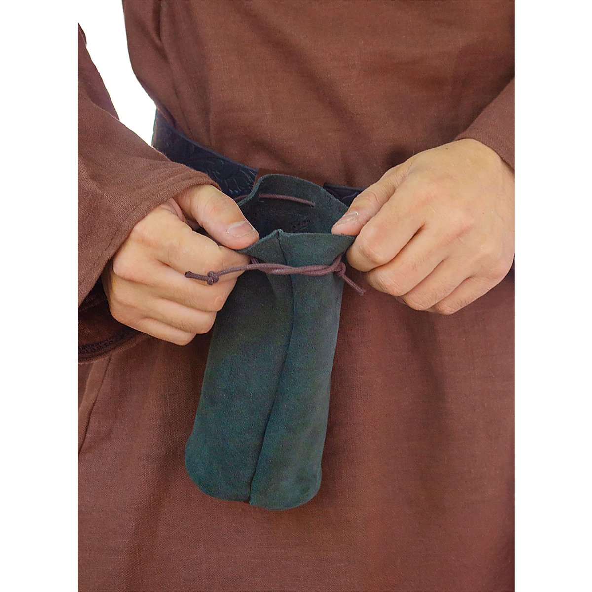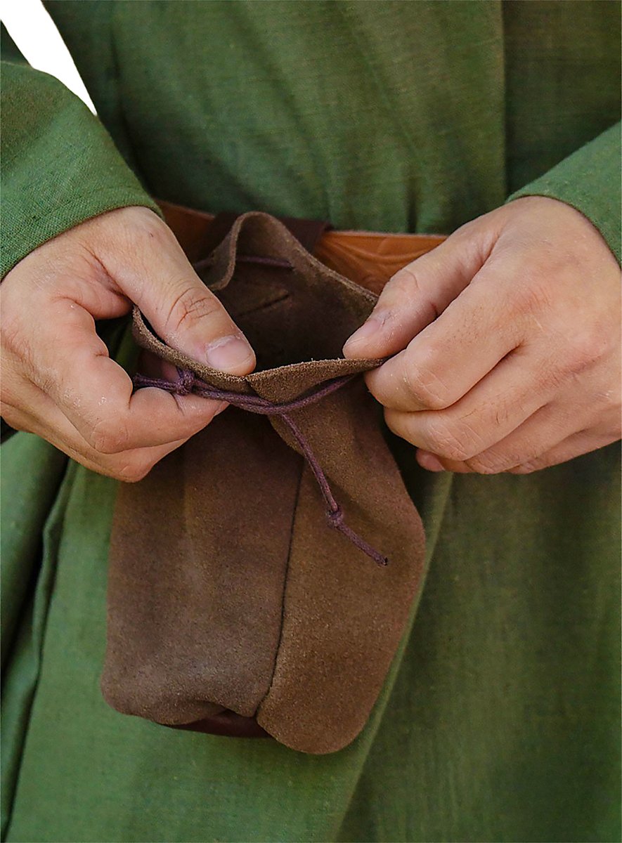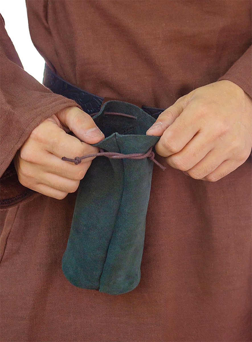 La borsa tubolare Ferdinand è un accessorio versatile che può contenere molti oggetti diversi, tra cui monete, proiettili, bulloni, oggetti magici, cellulari, chiavi dell'auto e bottiglie d'acqua fino a 33 cl. La borsa da cintura è fissata saldamente alla cintura grazie alla sua tracolla e può essere aperta e chiusa rapidamente con un cordino in pelle.