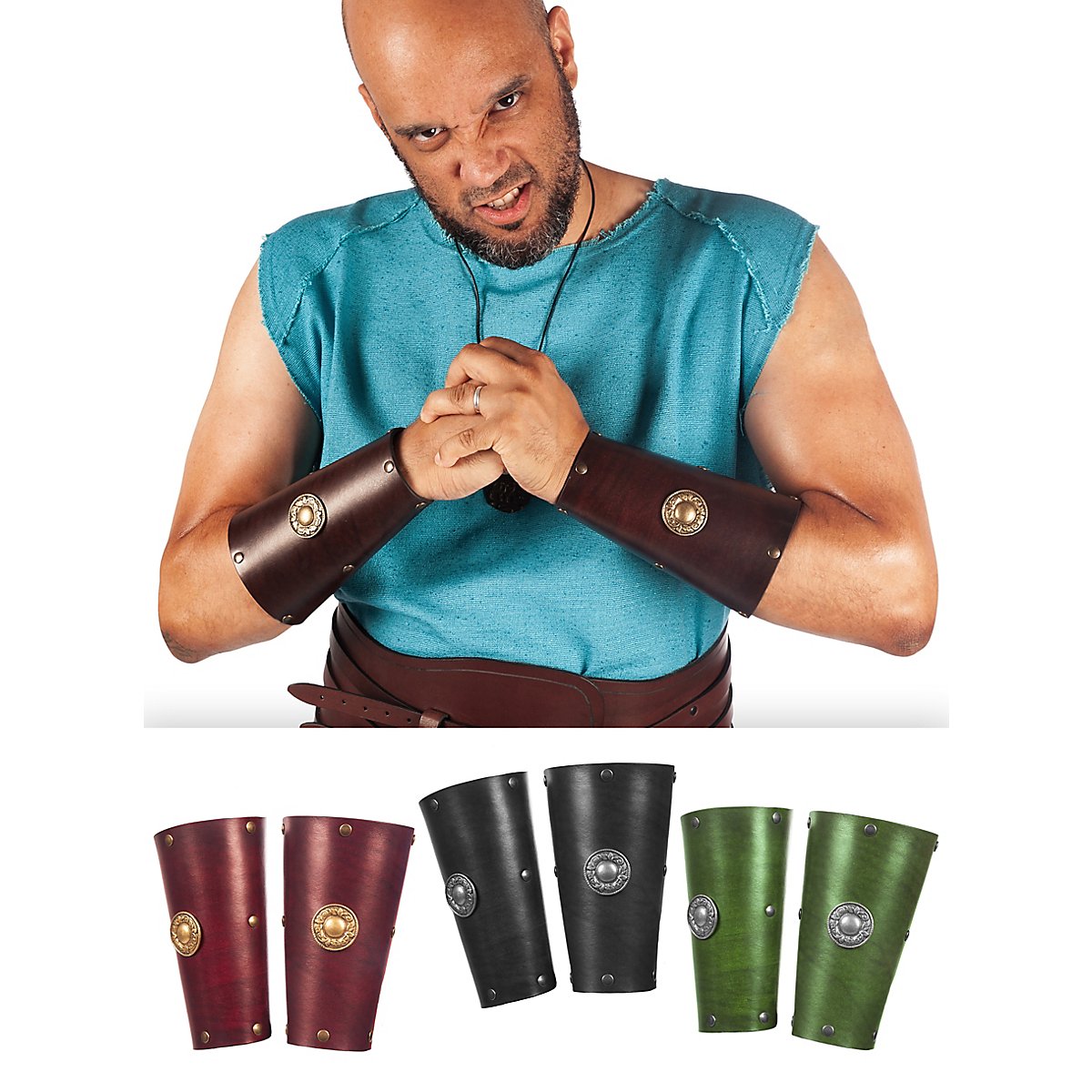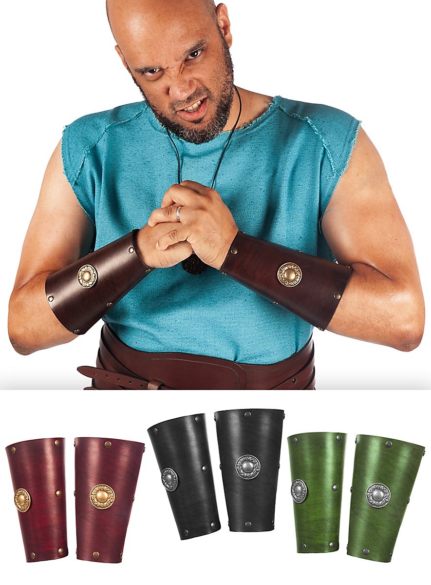 I bracers dal taglio semplice ricevono un significativo aggiornamento e un tocco romano grazie al rivetto decorativo centrale.