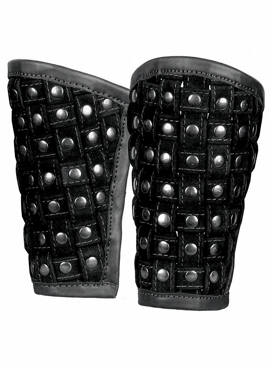 Se siete alla ricerca di bracers eccellenti, non cercate oltre! I nostri bracers - rogue sono un'ottima aggiunta a una varietà di abiti medievali e fantasy. Sono costituiti da strisce di pelle intrecciate e rivettate e sono bordati di morbida pelle scamosciata. Questo tipo di costruzione non solo offre una protezione sufficiente, ma è anche estremamente comoda da indossare. A ciò contribuiscono anche le tre fibbie a rullo, che possono essere regolate individualmente e grazie alle quali i bracers possono essere indossati comodamente.