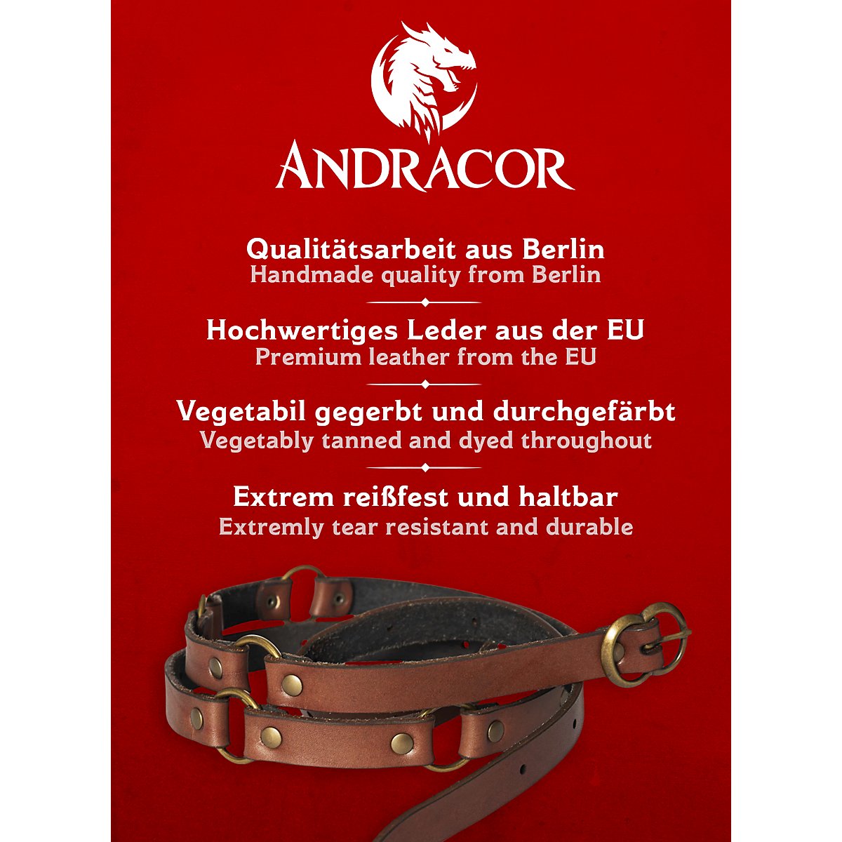 • Materiale: Pelle da armatura spessa 3,5 mm