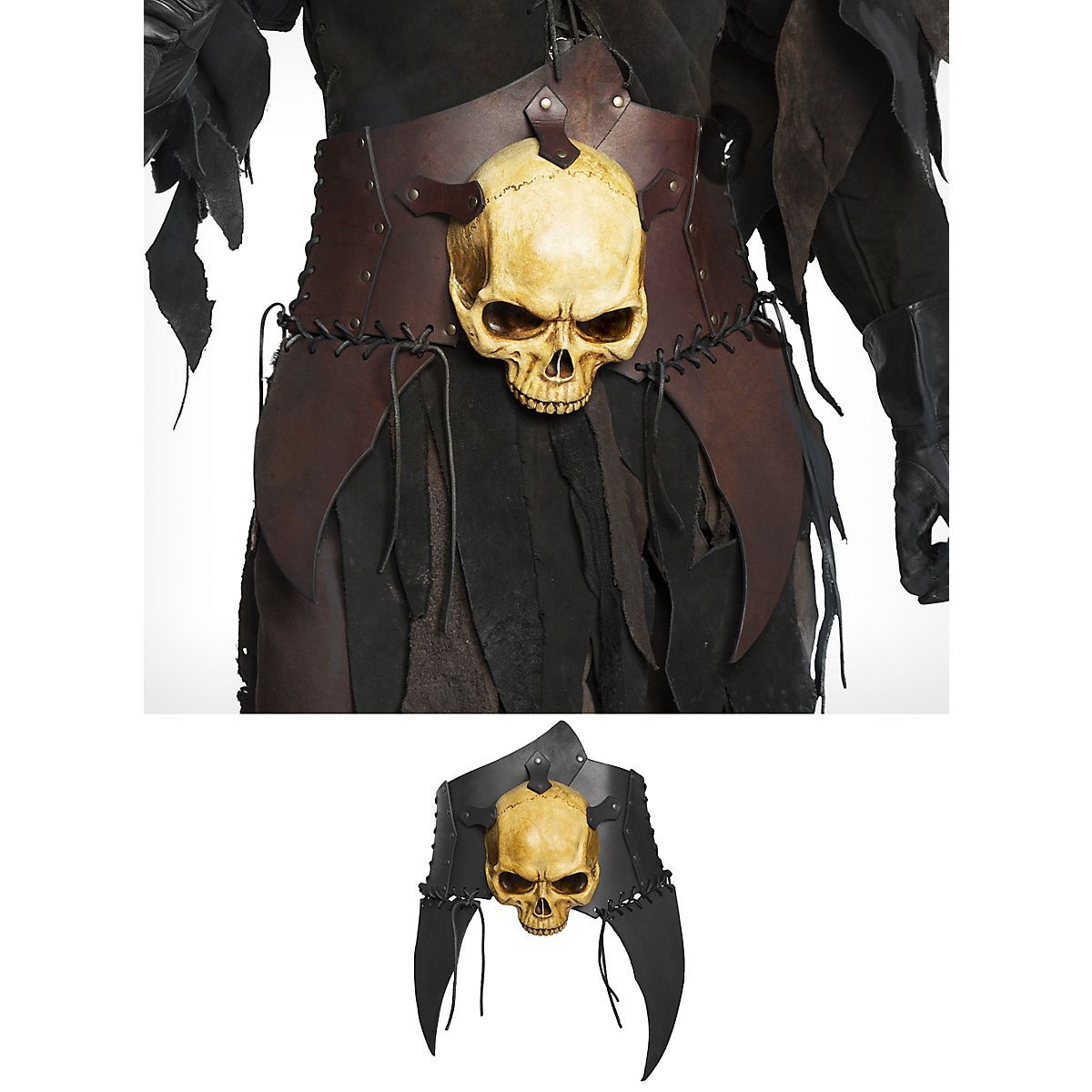 • Materiale: Pelle da armatura spessa 3,5 cm; teschio: resina fusa