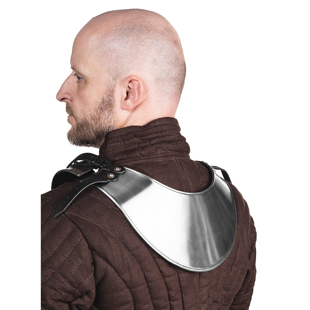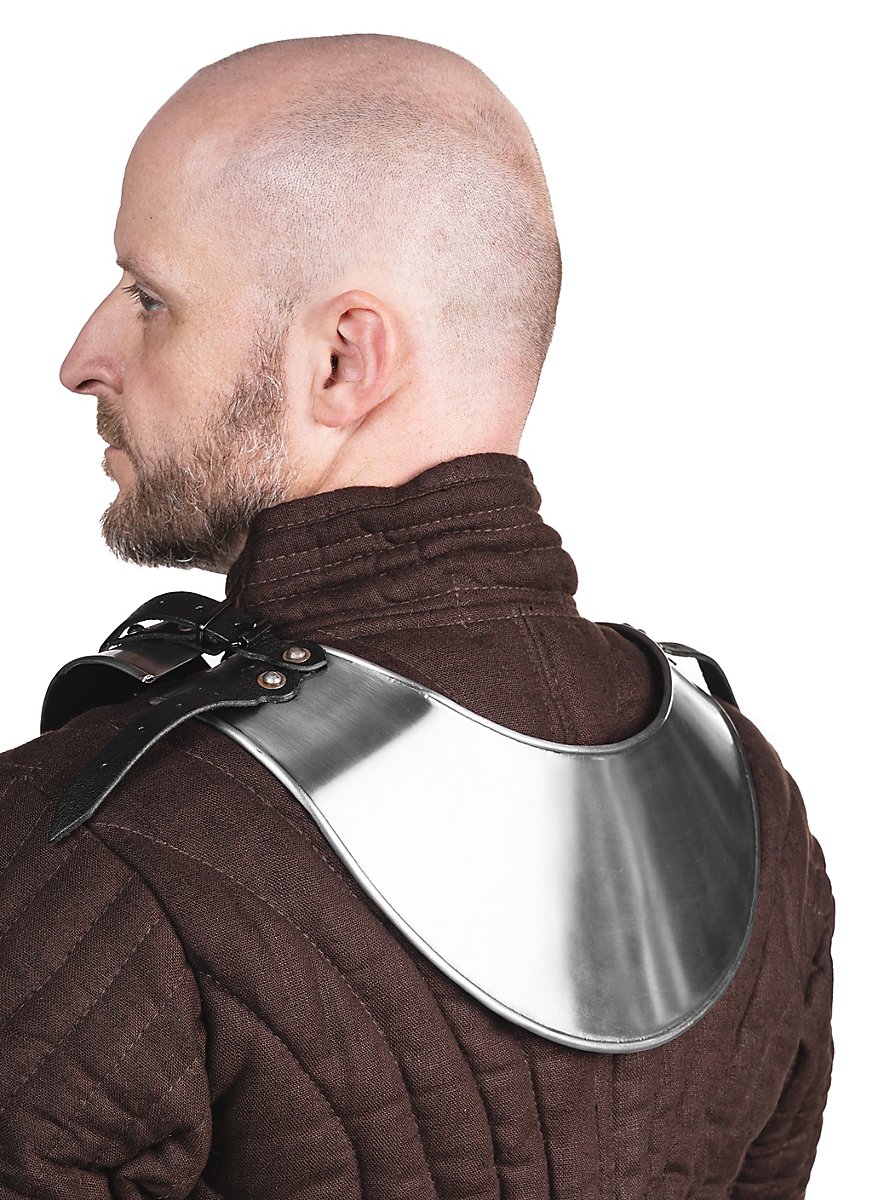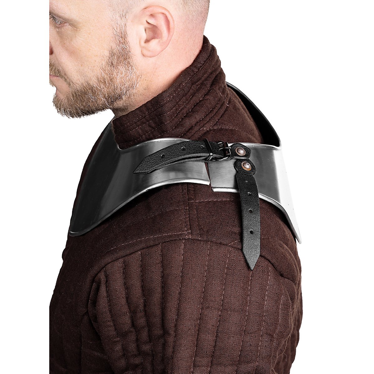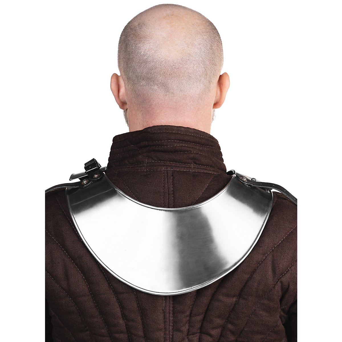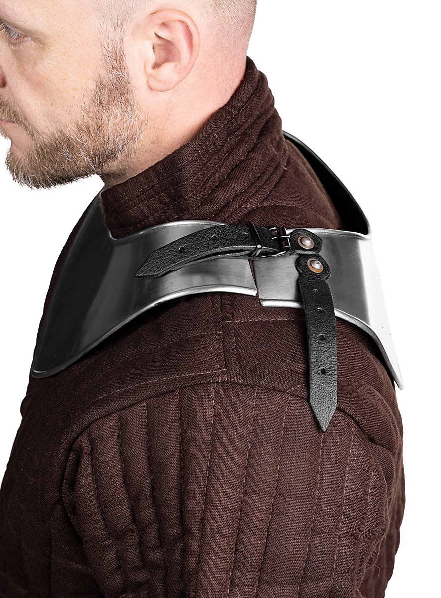 Questo collare medievale in metallo è una buona protezione contro i colpi di armi imbottite in Larp e si usa per fissare le spalle in metallo o le spalle in pelle Andracor. Si adatta bene a personaggi bellicosi e soldateschi. Il collare può essere indossato unisex ed è stato progettato per essere indossato sotto un doppio mantello foderato, come un gambeson o una corazza. Il collare è fissato per mezzo di una cerniera con la quale il collare viene messo intorno al collo e fissato dall'altro lato con una cinghia di cuoio.