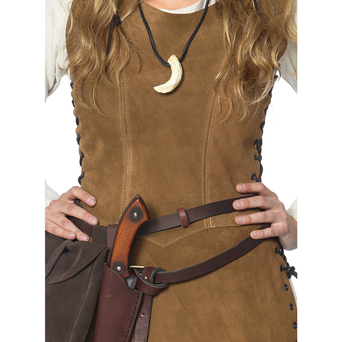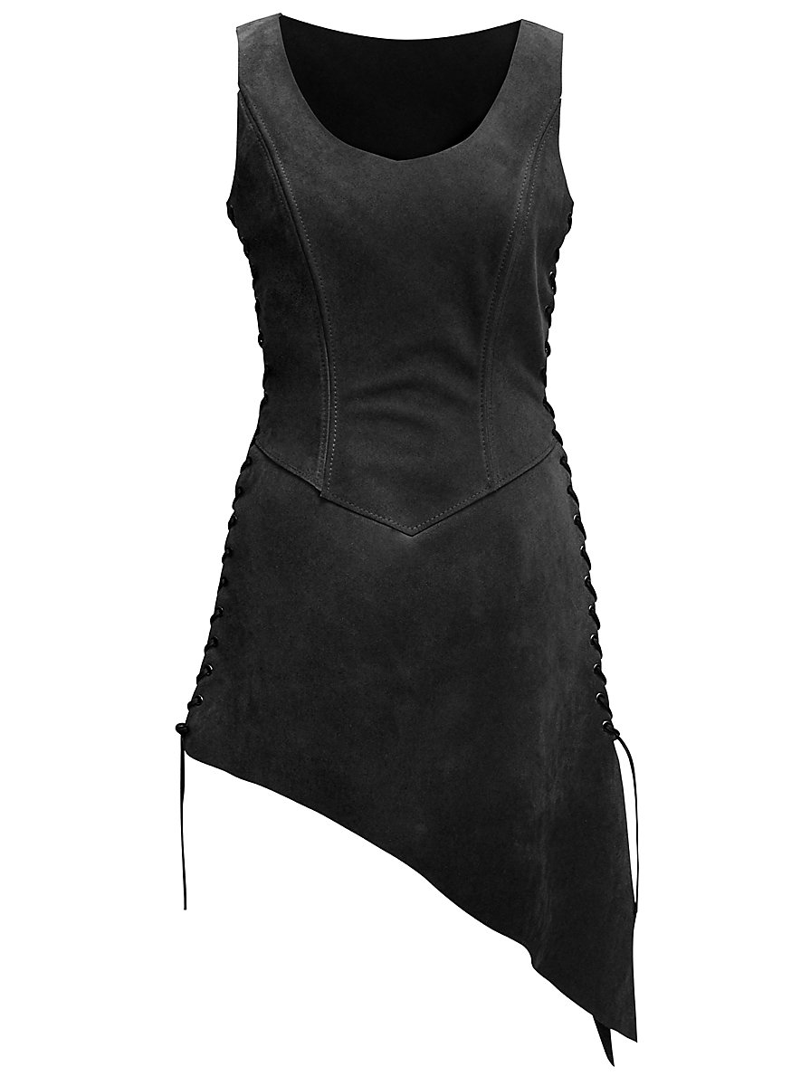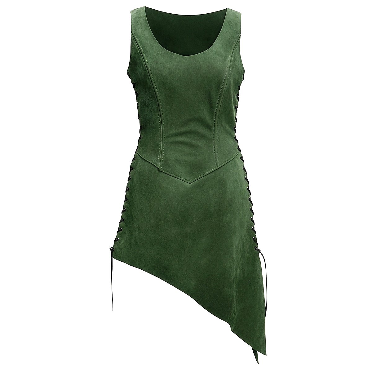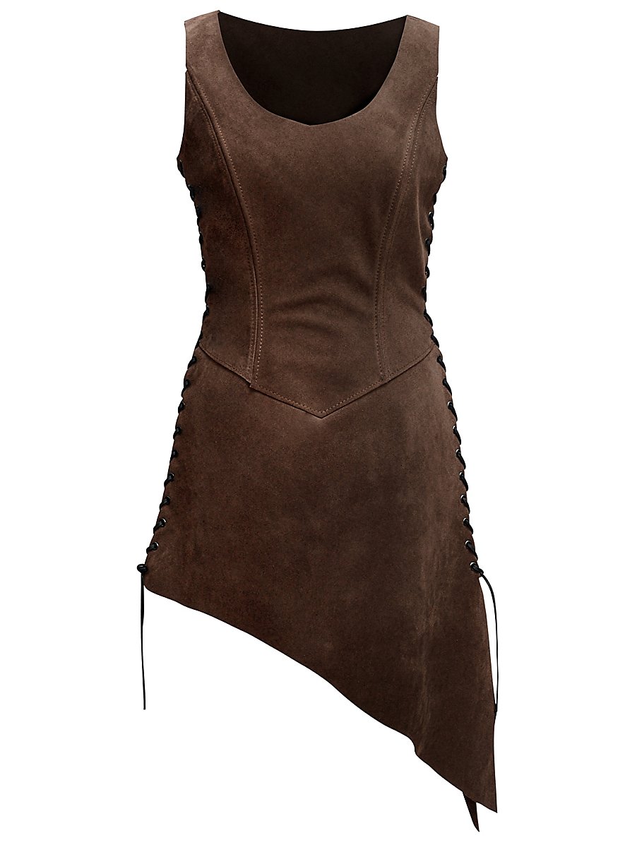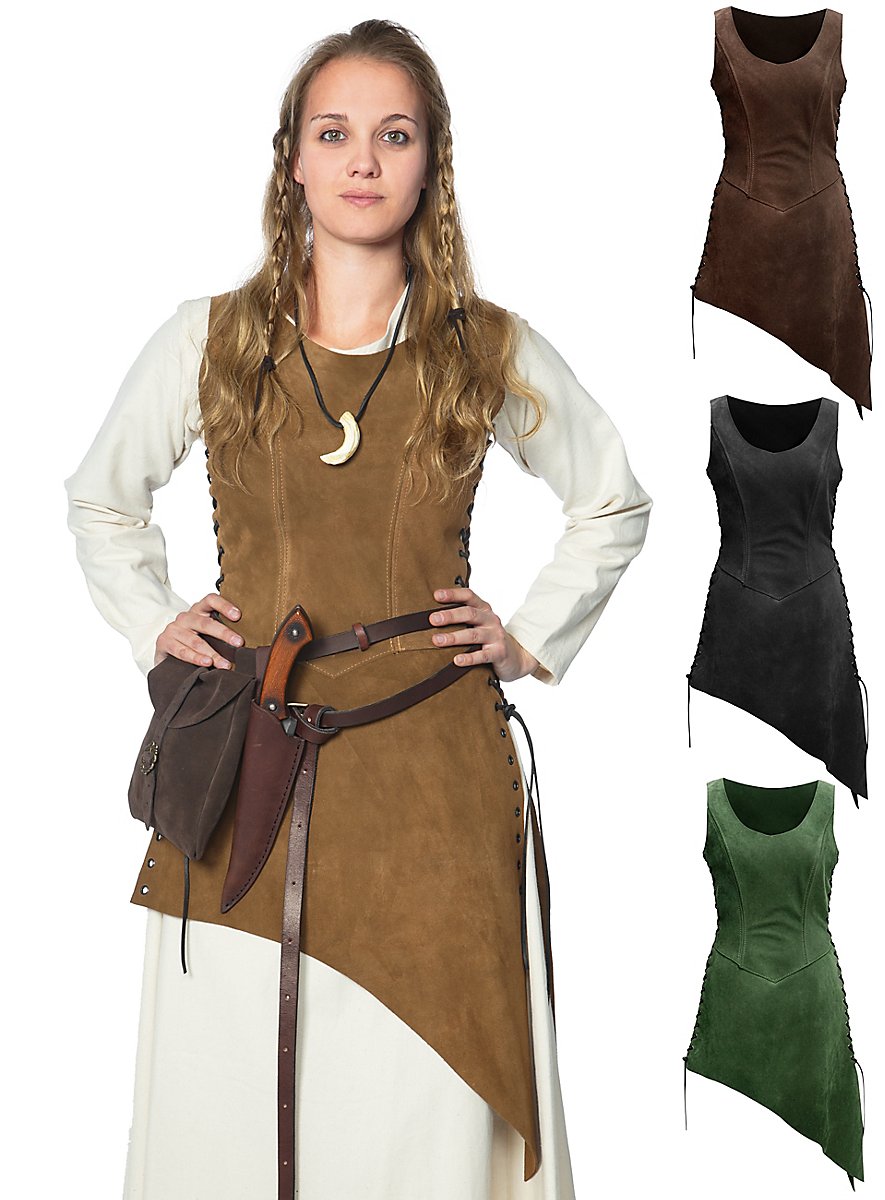 Che siate bariste o amazzoni, locandiere o guerriere: questo corpetto con gonna in pelle scamosciata è molto versatile e può essere usato come armatura o come tunica. Il corpetto da barista è realizzato a mano in pelle scamosciata di alta qualità, resistente agli strappi, e presenta robusti occhielli in metallo sull'allacciatura laterale. Questi ultimi consentono di personalizzare il corpetto in base alla propria figura, assicurando una vestibilità sicura e confortevole a questo ottimo capo base.