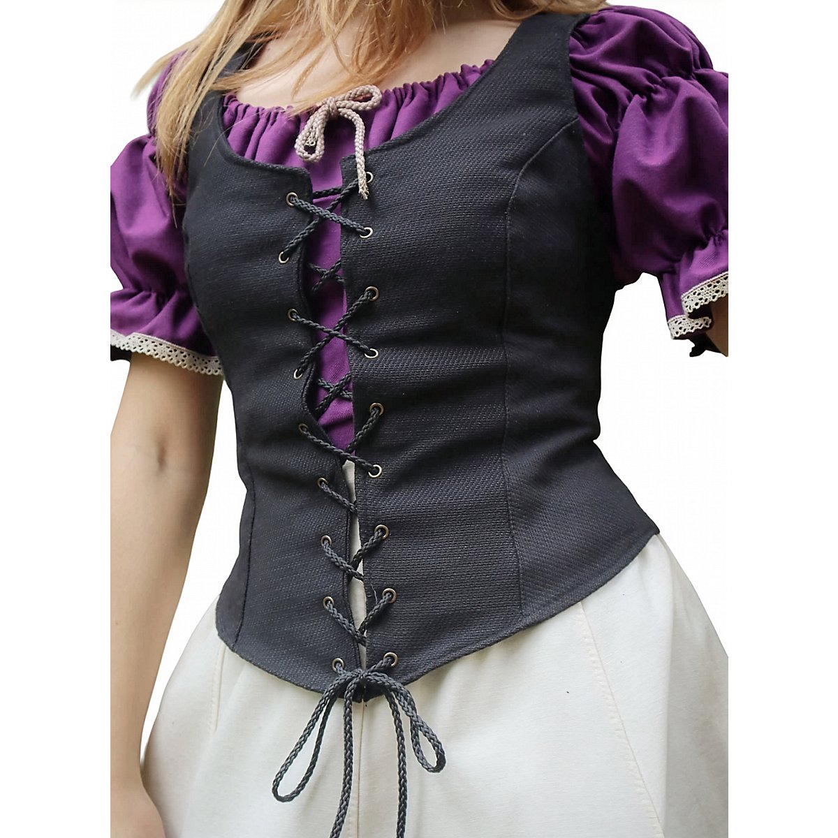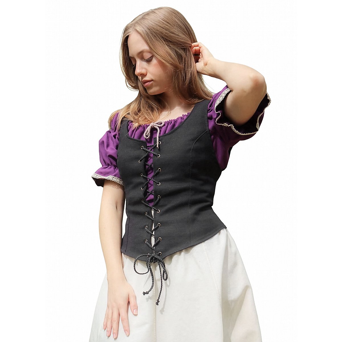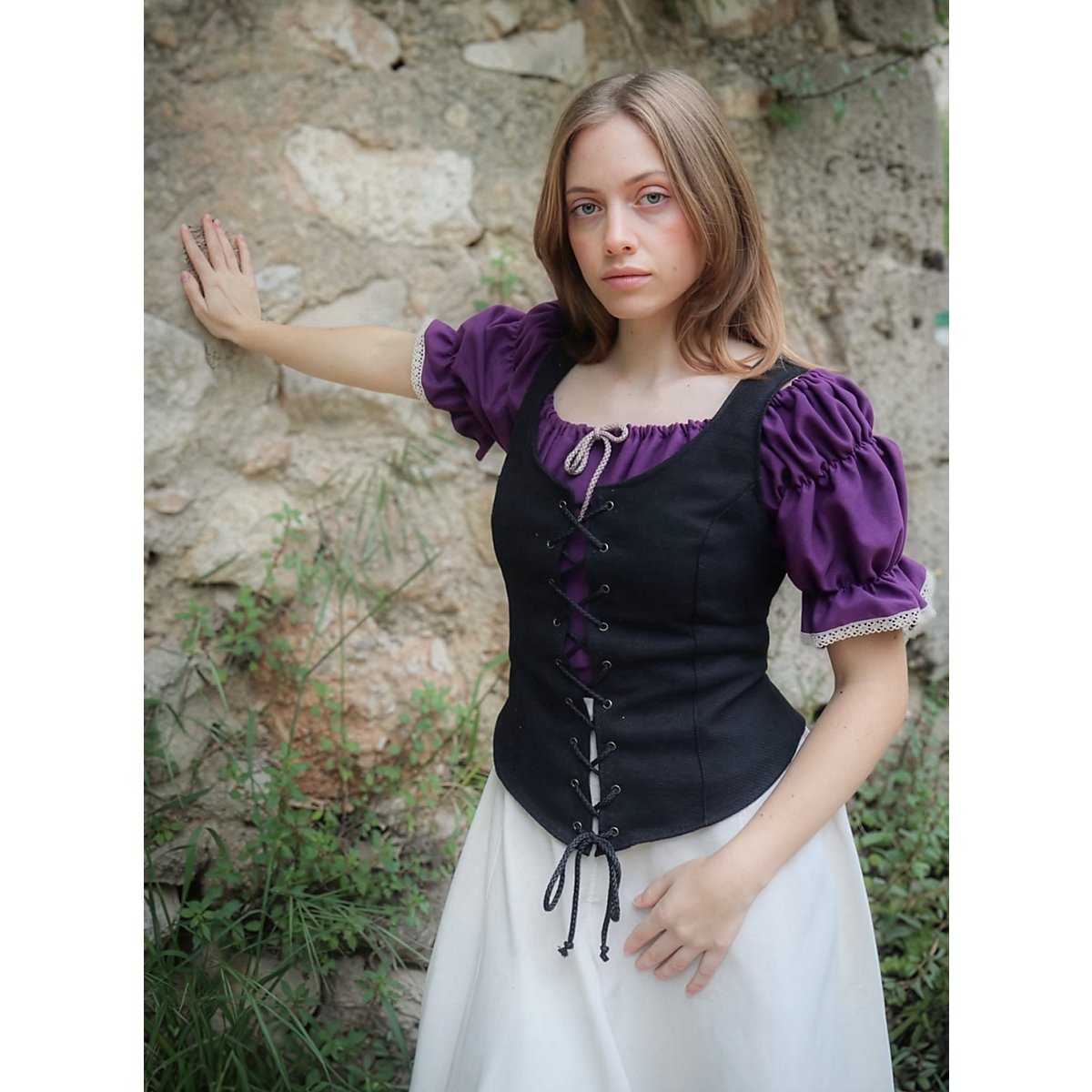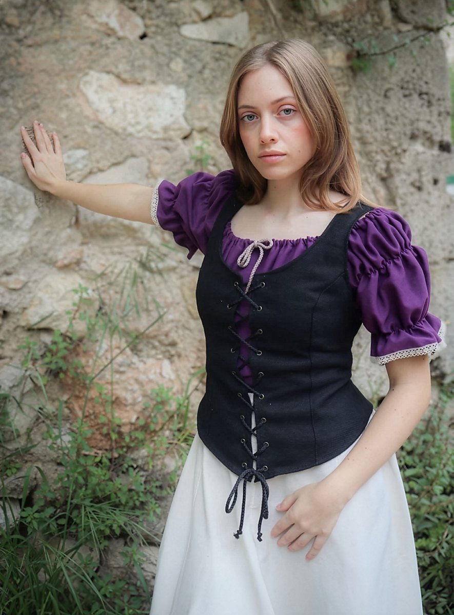 L'allacciatura frontale garantisce una vestibilità personalizzabile, mentre le cuciture rinforzate mantengono la forma senza compromettere il comfort. Che ti stia preparando per una partita a "Dungeons & Dragons", un Larp o un mercato medievale, il corsetto allacciato "Emma" è un capo indispensabile nel guardaroba fantasy di ogni donna.