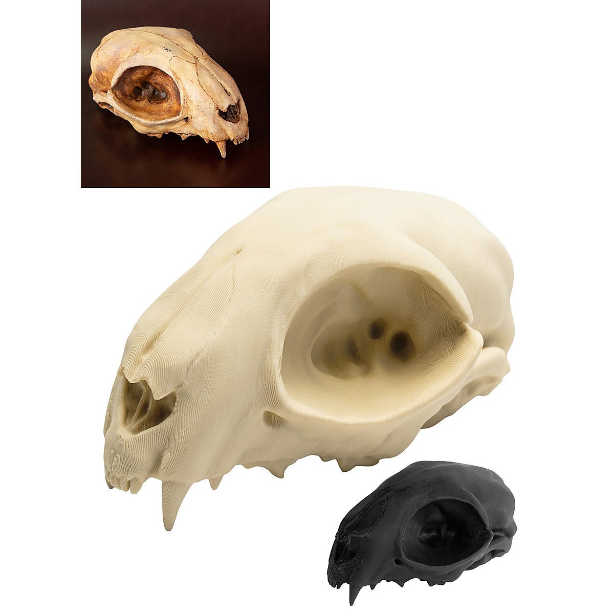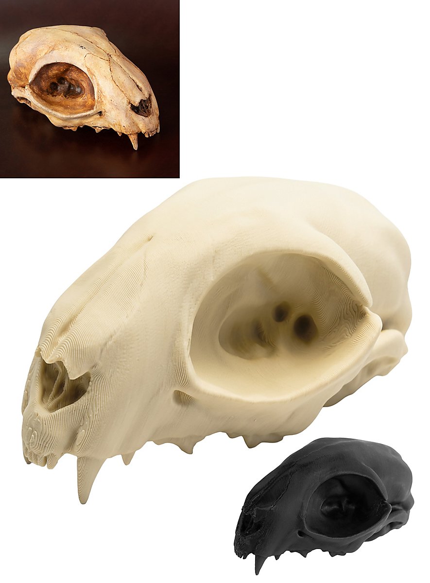 Questo cranio di gatto di 12 cm realizzato in PLA stampato in 3D è interessante per tutte le streghe, gli sciamani, o anche gli orchi e gli non morti nel LARP. Il cranio non dipinto può essere facilmente dipinto a piacere e diventa così un elemento unico per il tuo abbigliamento. Ma anche come oggetto in piedi nel campo, il realistico cranio di gatto fa una grande impressione.