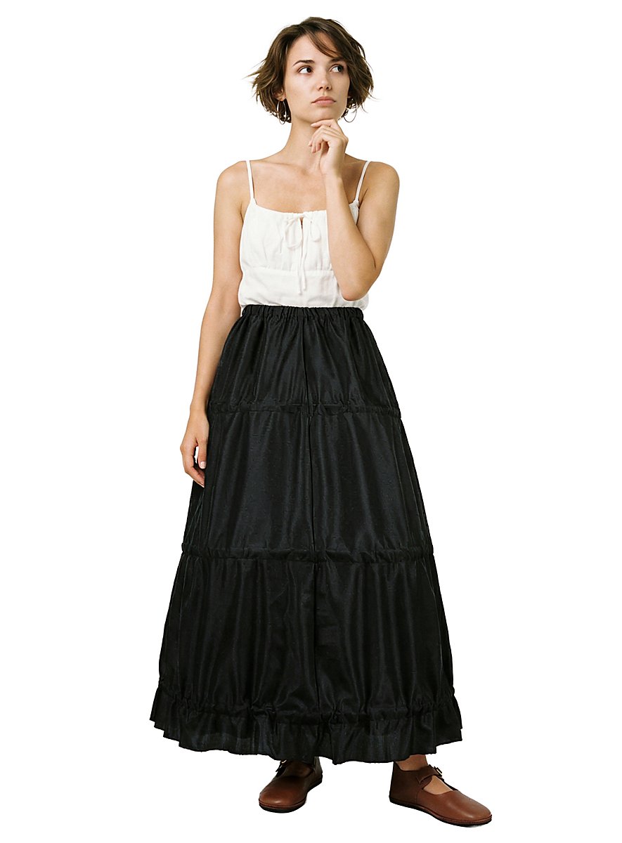 Questa crinolina nera può essere indossata perfettamente sotto numerosi abiti e costumi dal Rinascimento al periodo classico e conferisce agli abiti corrispondenti ancora più presenza e pienezza.