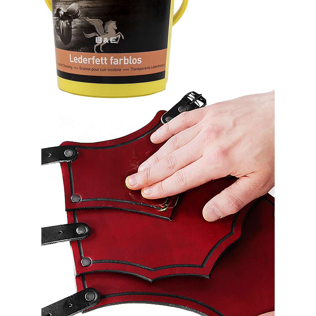 La pelle è un prodotto naturale. E come tale, reagisce di conseguenza al calore, all'umidità, alla luce del sole, al sudore e a tutte le altre cose spiacevoli che ci aspettano nella vita quotidiana del LARP. Per godere a lungo della vostra armatura in pelle, è quindi consigliabile curarla regolarmente. È qui che entra in gioco il nostro grasso per cuoio: composto da vaselina e dai migliori oli e grassi, il nostro grasso per cuoio viene assorbito rapidamente e mantiene la pelle elastica. Basta applicarne uno strato sottile con un panno o una spugna, lasciarlo assorbire e il gioco è fatto. Anche la vostra (out)armatura è impregnata e può facilmente resistere a forti acquazzoni!