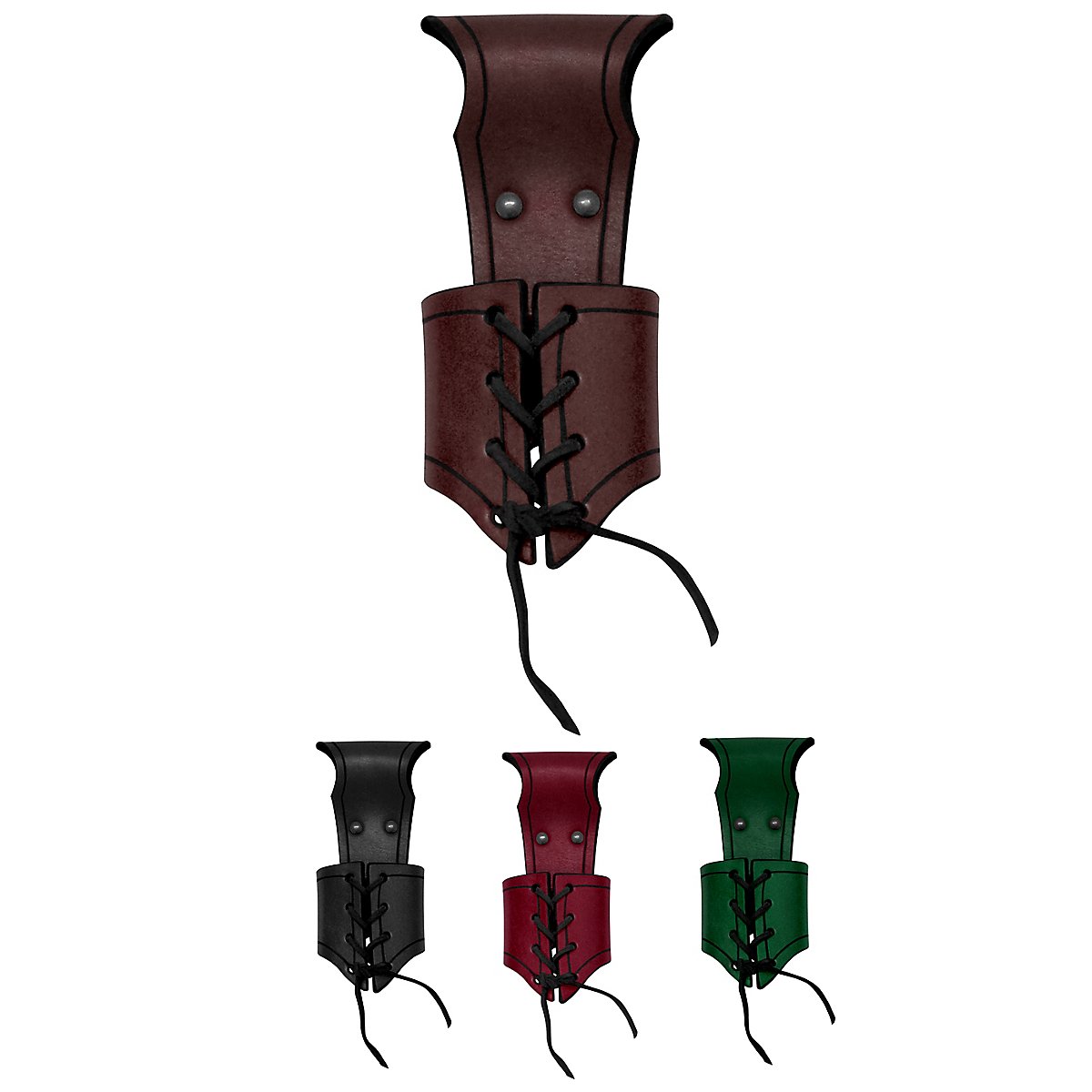 Se non si è fissi su un'arma, è consigliabile scegliere un accessorio di montaggio che possa essere utilizzato in modo flessibile. Ed è qui che entra in gioco il nostro porta-arma allacciato - Page. Il diametro del porta-arma allacciato - Page può essere regolato in modo variabile con l'aiuto dell'omonima cinghia di cuoio allacciata. In questo modo, è possibile trasportare armi o oggetti con una circonferenza massima di 24 cm. Il porta-arma allacciato è realizzato in pelle da armatura di alta qualità e robustezza, con uno spessore di 3-4 mm. Grazie alle sue dimensioni, il porta-armi in pelle è adatto anche ai bambini!