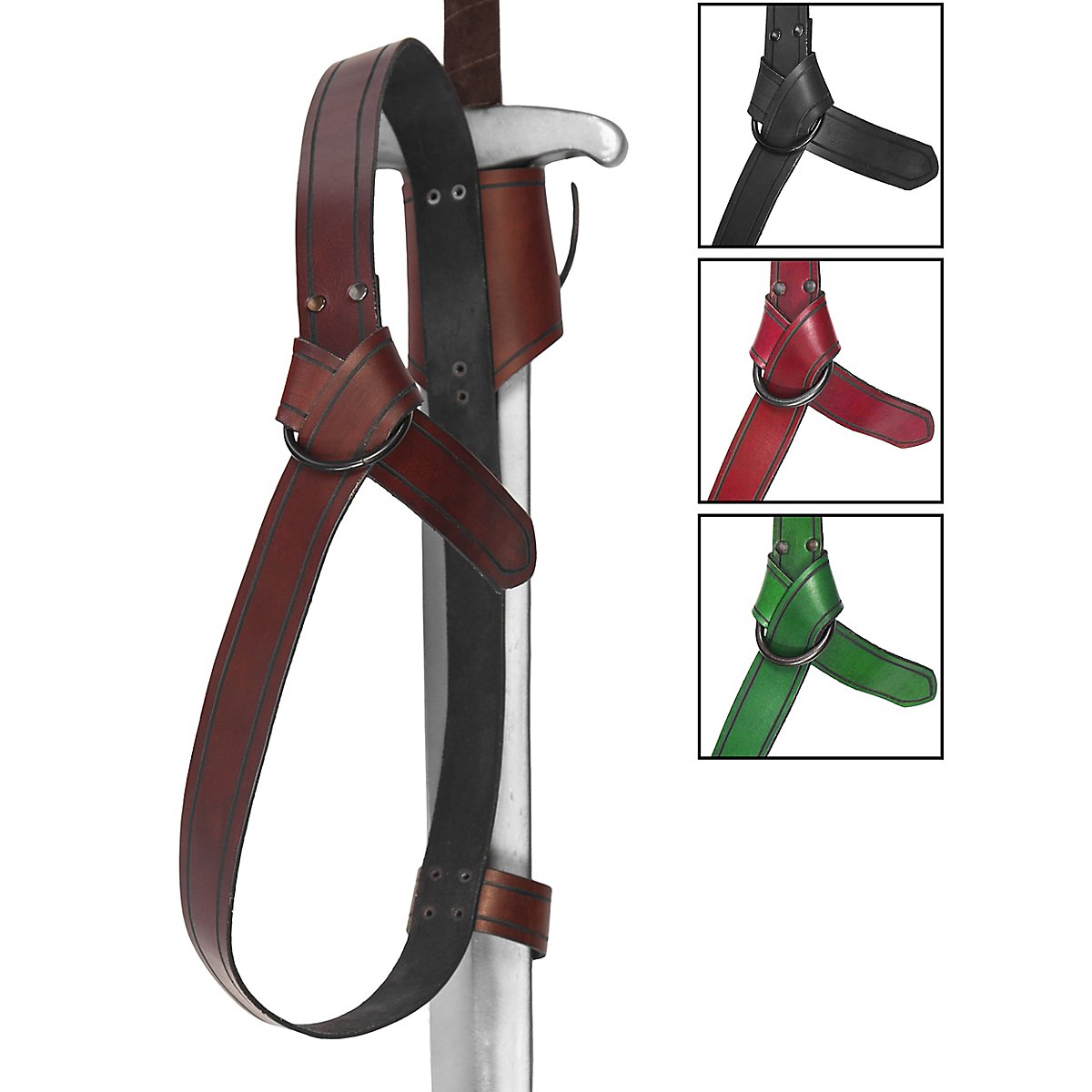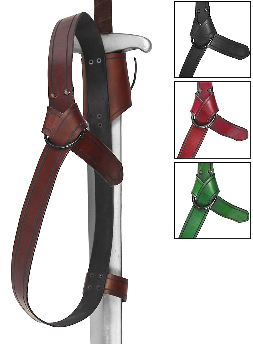 Il porta-spada dorsale - avventuriero è chiuso da un anello in ferro battuto, è quindi universalmente regolabile senza limitazioni di fori ed è realizzato con la stessa pelle delle nostre armature. Pertanto, non solo offre una qualità eccezionale, ma può anche essere combinato molto bene con le armature e gli altri accessori della nostra gamma.