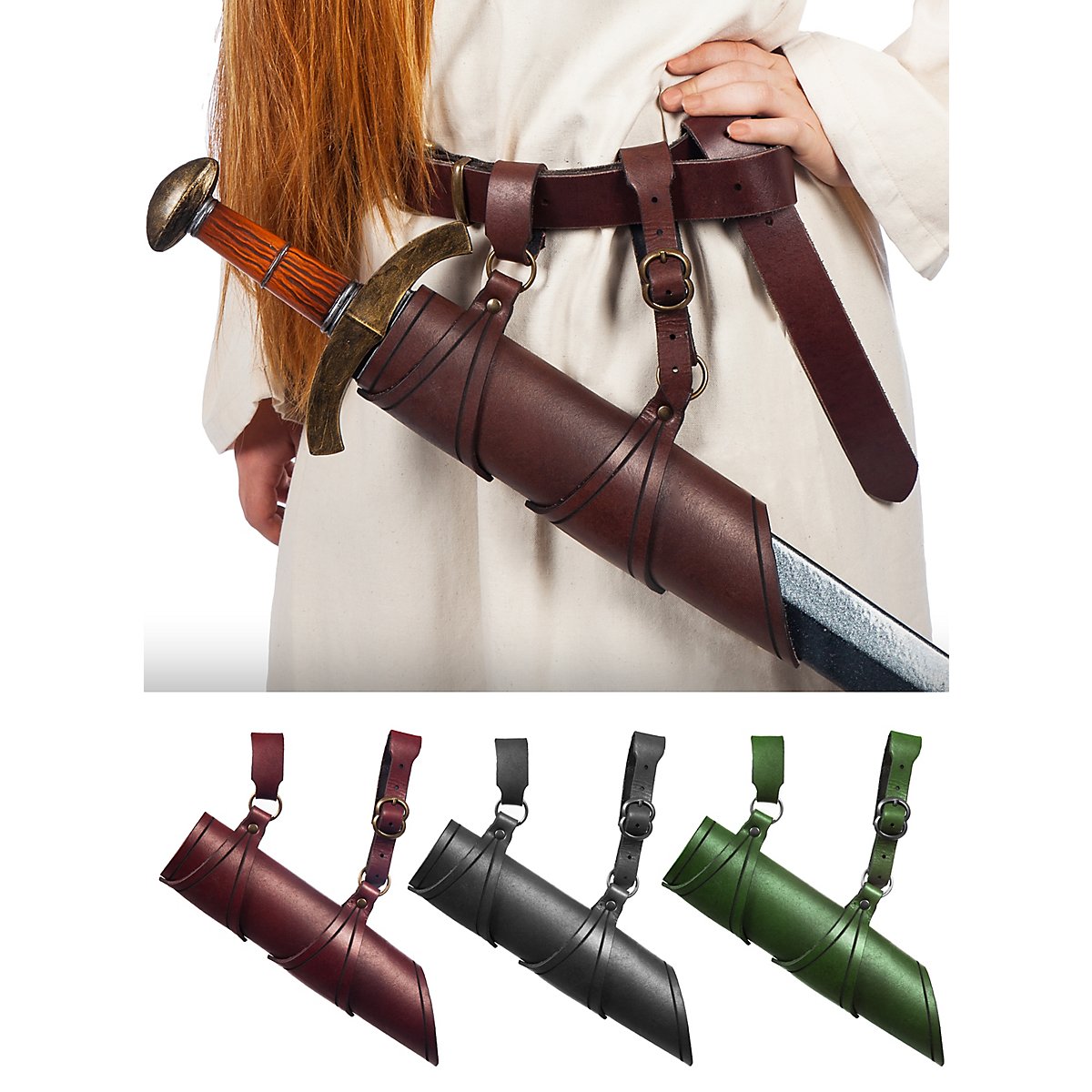 Questo pratico porta-spada Larp in pelle è ideale per varie armi imbottite. In particolare, le spade Larp possono essere trasportate facilmente. È dotato di due passanti, il cui anello posteriore può essere regolato con una cintura in modo da personalizzare l'angolo del porta-spada. Si abbina perfettamente alle nostre armature Andracor e fa la sua bella figura sia nei personaggi fantastici che in quelli storici. Il set completo di armature Dragon Rider è disponibile in abbinamento al portaspada.