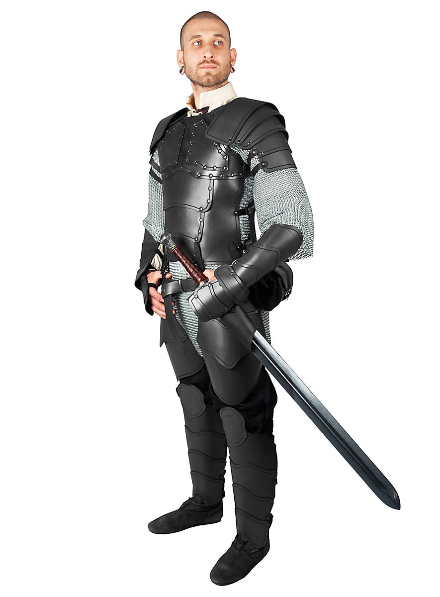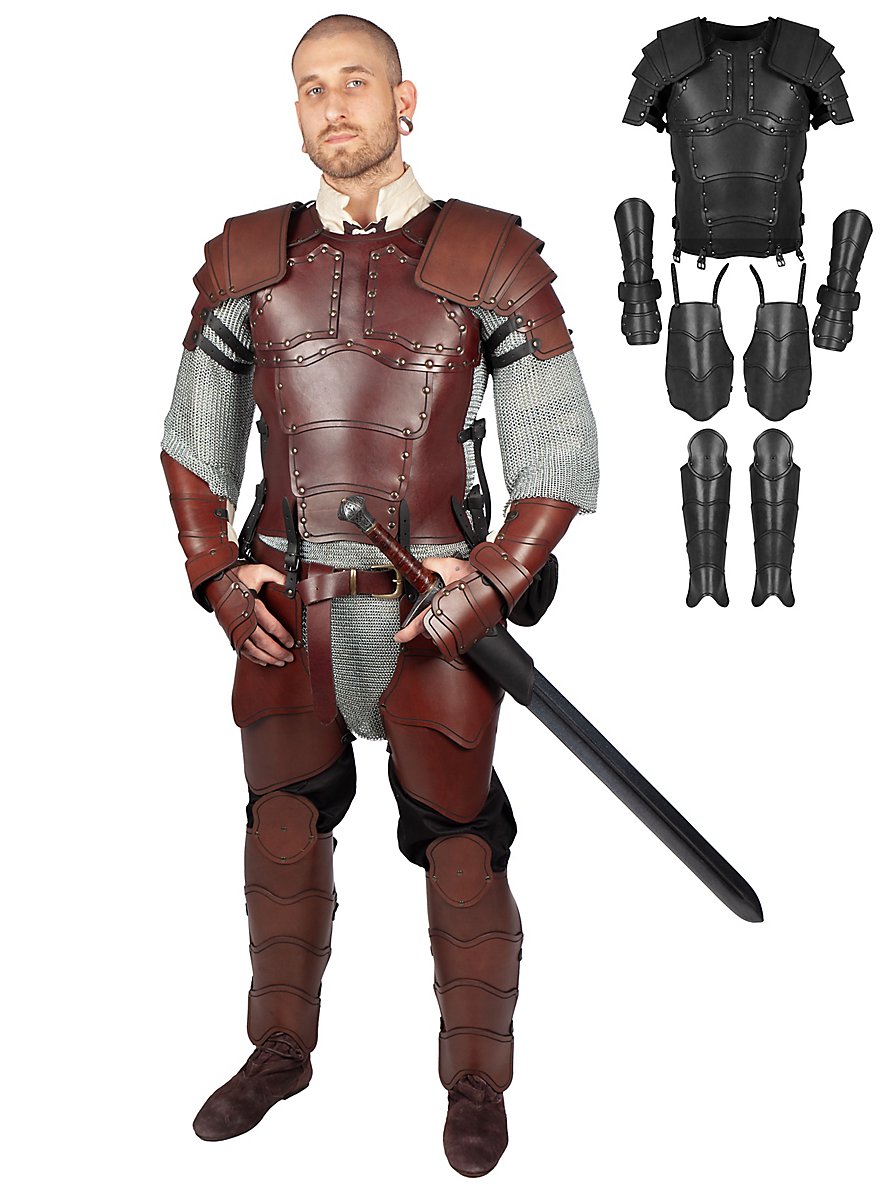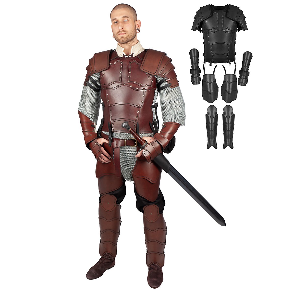 Questa armatura completa in nove pezzi combina una protezione sicura contro le armi imbottite con estrema leggerezza e mobilità. Che tu sia un mercenario, un guerriero o un elfo esploratore, questa armatura completa di alta qualità ti servirà bene per molti LARP.