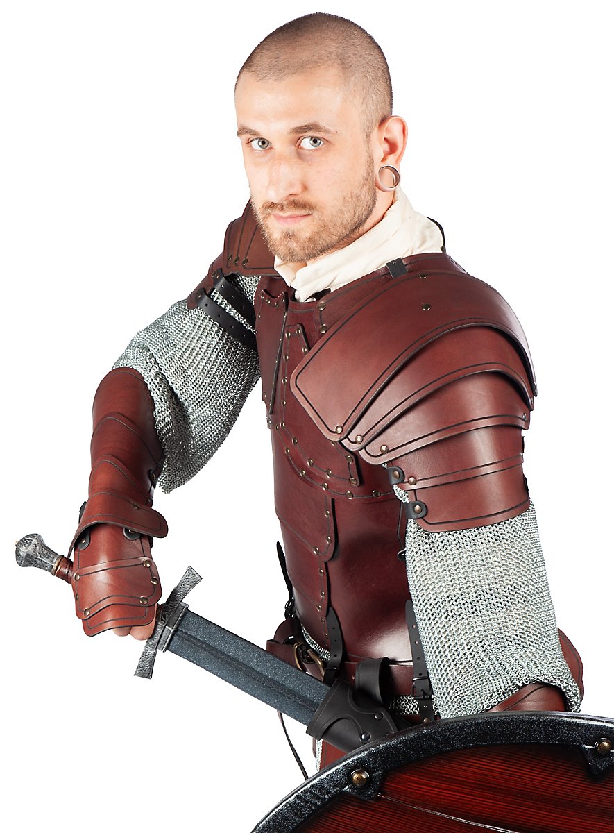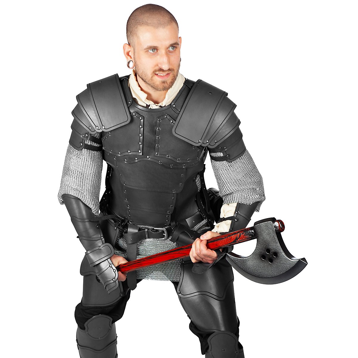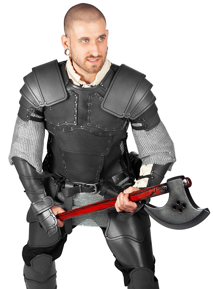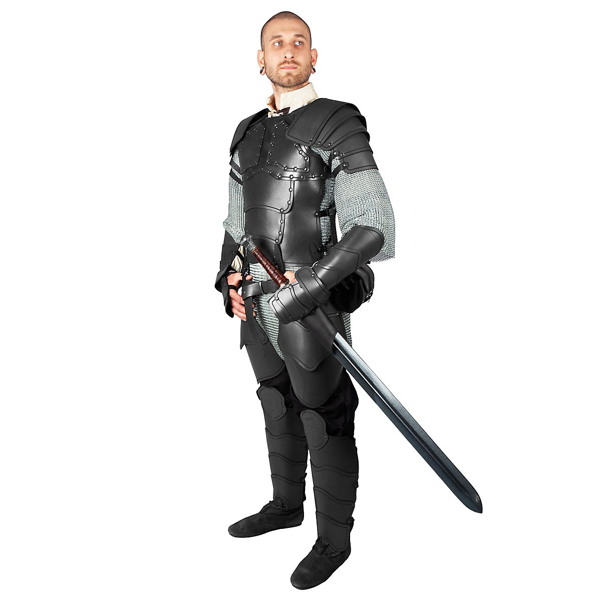 Questa armatura completa in nove pezzi combina una protezione sicura contro le armi imbottite con estrema leggerezza e mobilità. Che tu sia un mercenario, un guerriero o un elfo esploratore, questa armatura completa di alta qualità ti servirà bene per molti LARP.